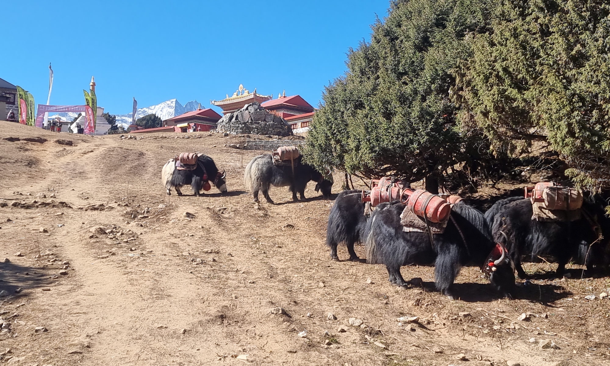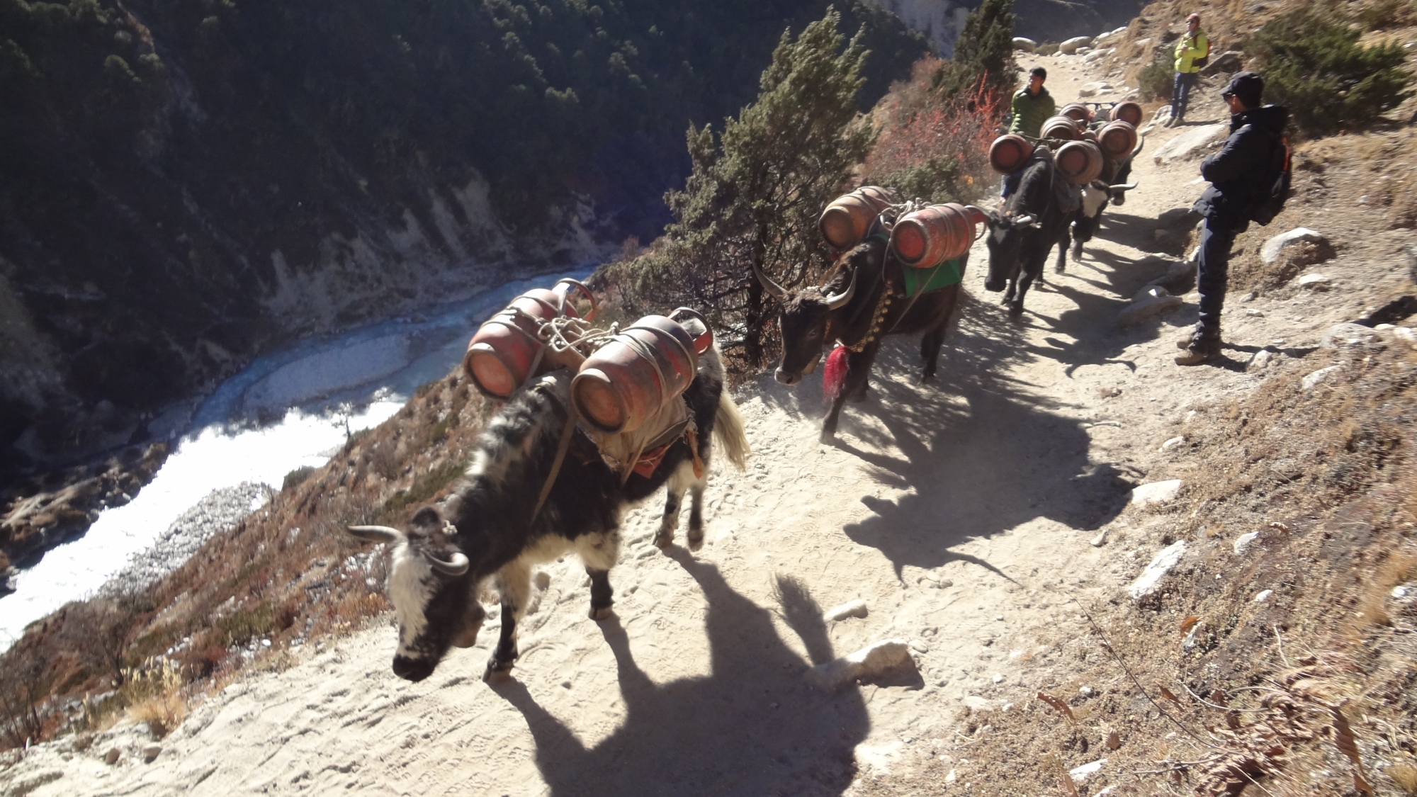 야크는 4,000m 이상에서 살기에 이곳에는 동키가 들이 스통을 2개씩 메고 가네요..힘들겠당...