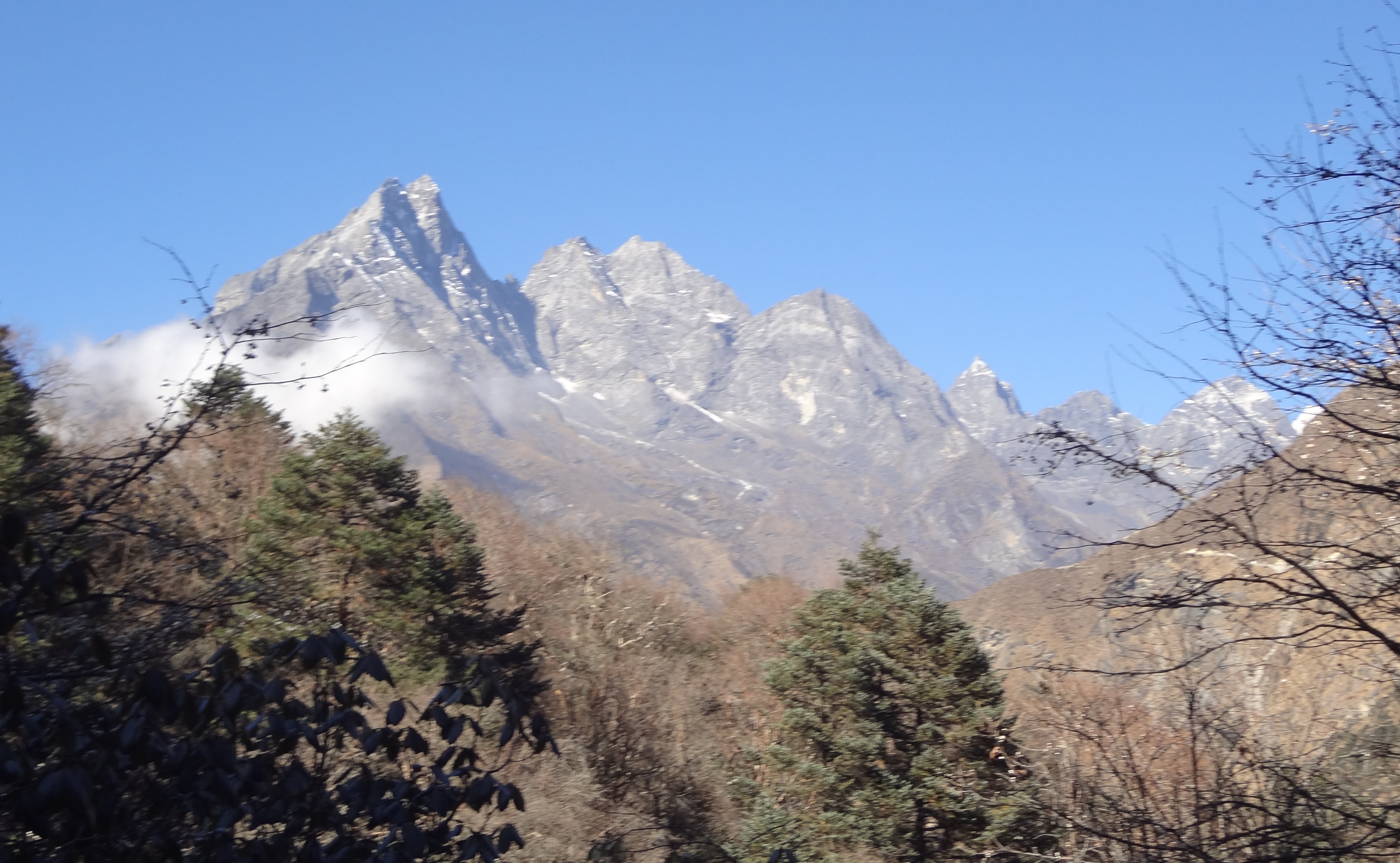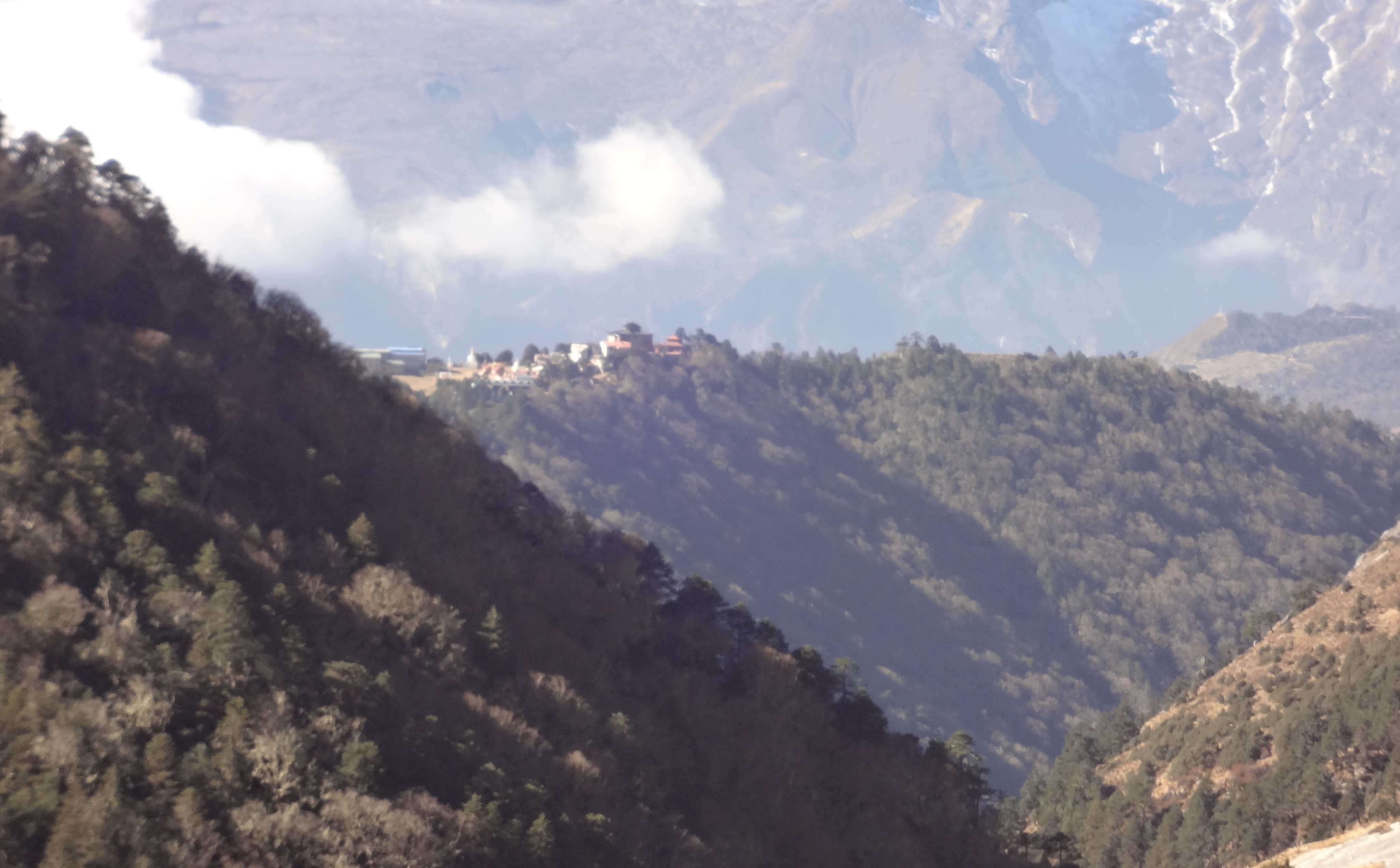텡보체에서 바라본 남체 방향.. 남체 건너편에 있는 '콩데'가 보입니다