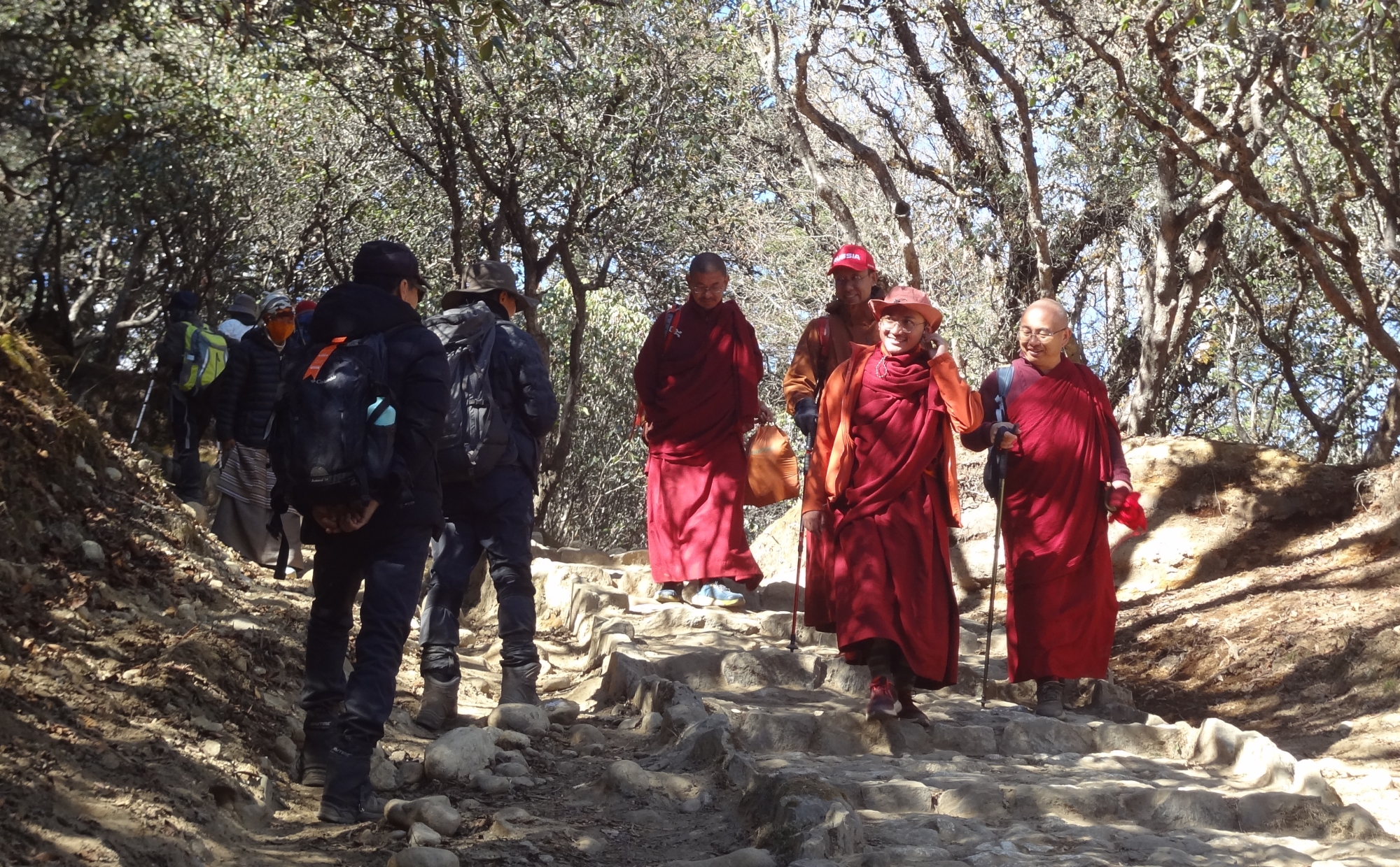 텡보체로 올라가는 길에 내려오는 스님들을 만났습니다