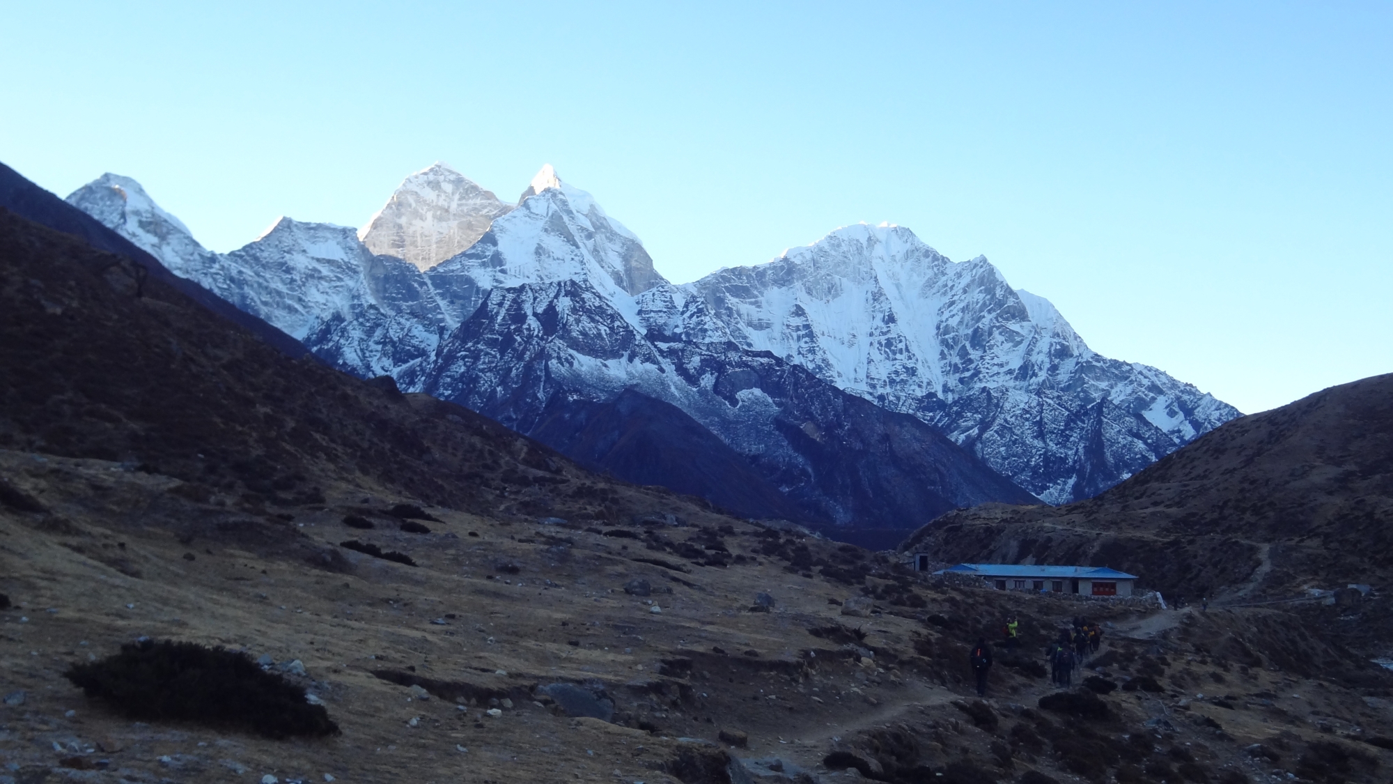 에베레스트, 로체, 아마다블람<우>이 가는 길을 배웅해 줍니다