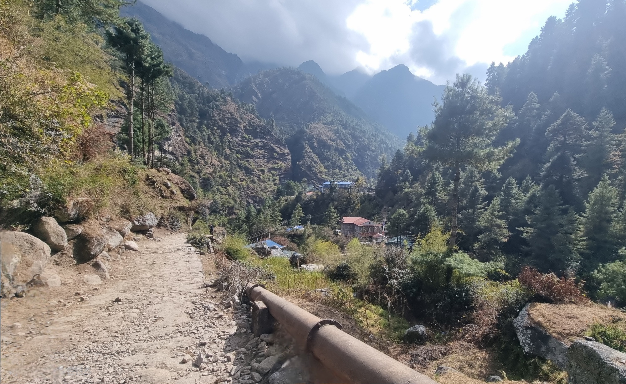 남체를 출발 하여 팍딩에서 점심을 먹고 루크라 까지 18km를 가는 여정 입니다