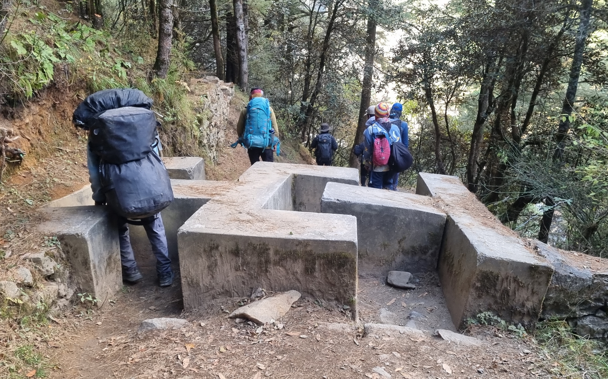 계단위 저 문은 루크라 끝에 자리하고 있으며 네팔인 최초 에베레스트를 오른 파쌍라무를 기념하기 위해 만든 문 입니다