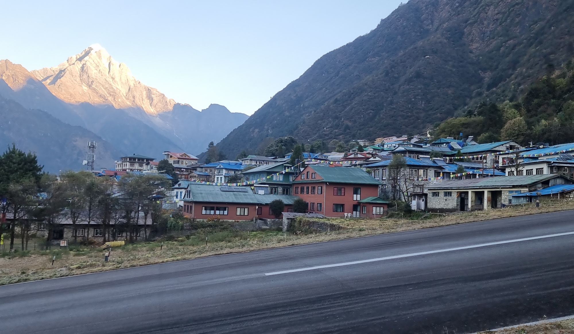 루크라 공항 뒤로 이어지는 길은 쿰부히말라야로 가는 길 입니다