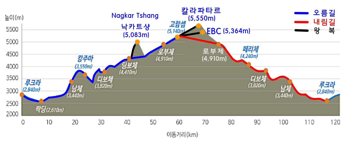 딩보체(4,410m)⇒ 낙카트샹(5,083m)⇒ 딩보체(4,410m) |