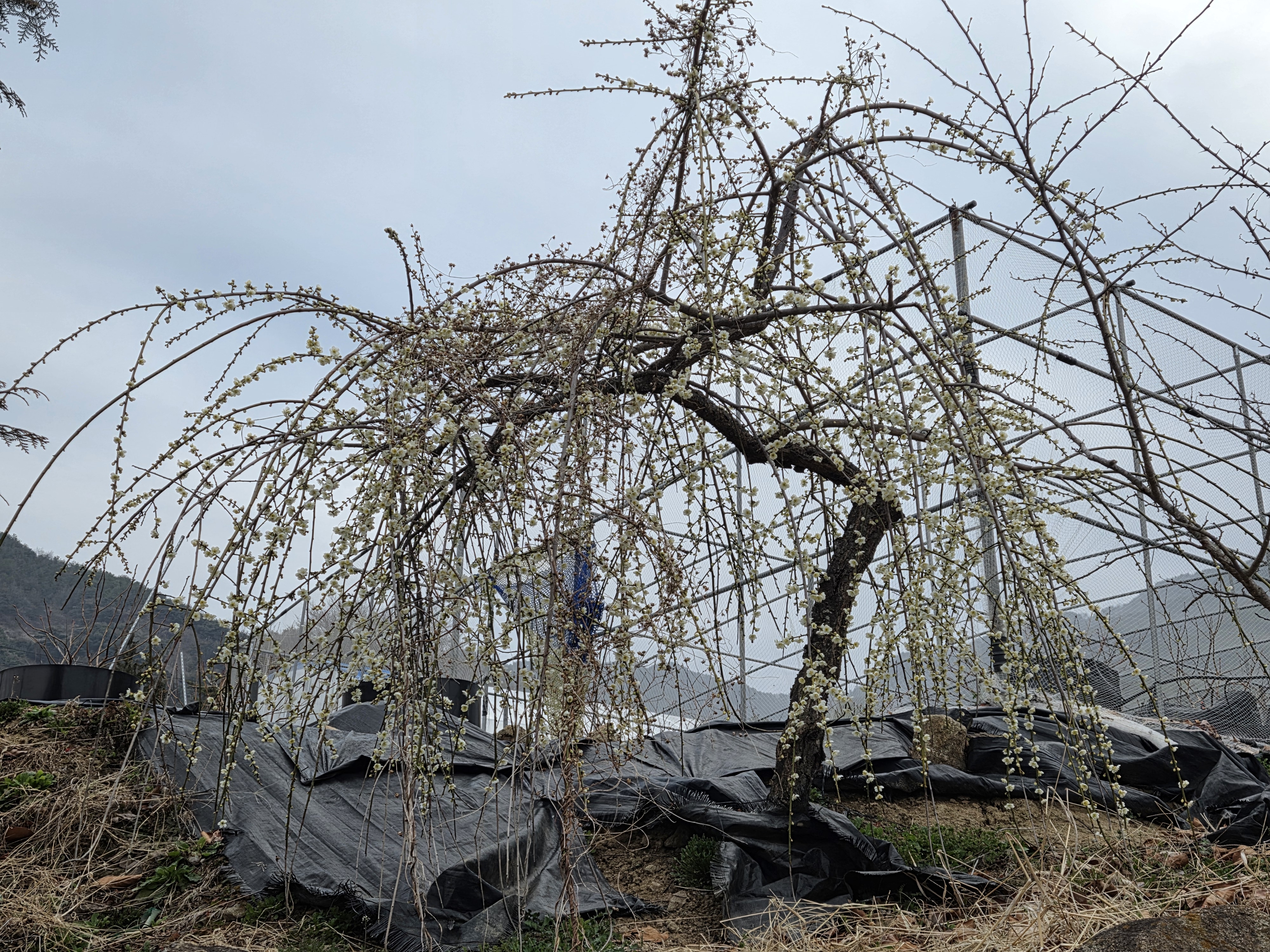 능수버들 같이 가지가 아래로 늘어져 있어요