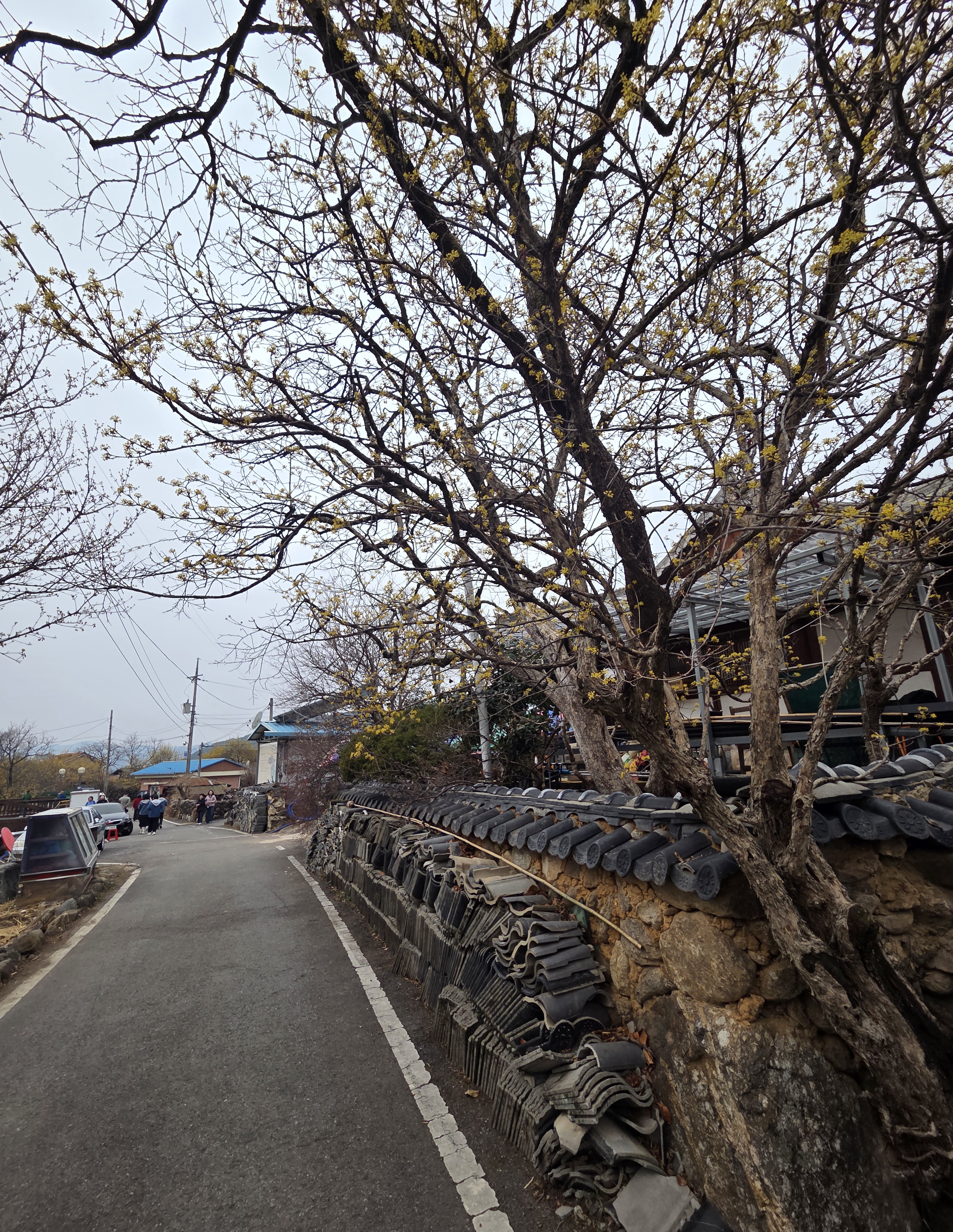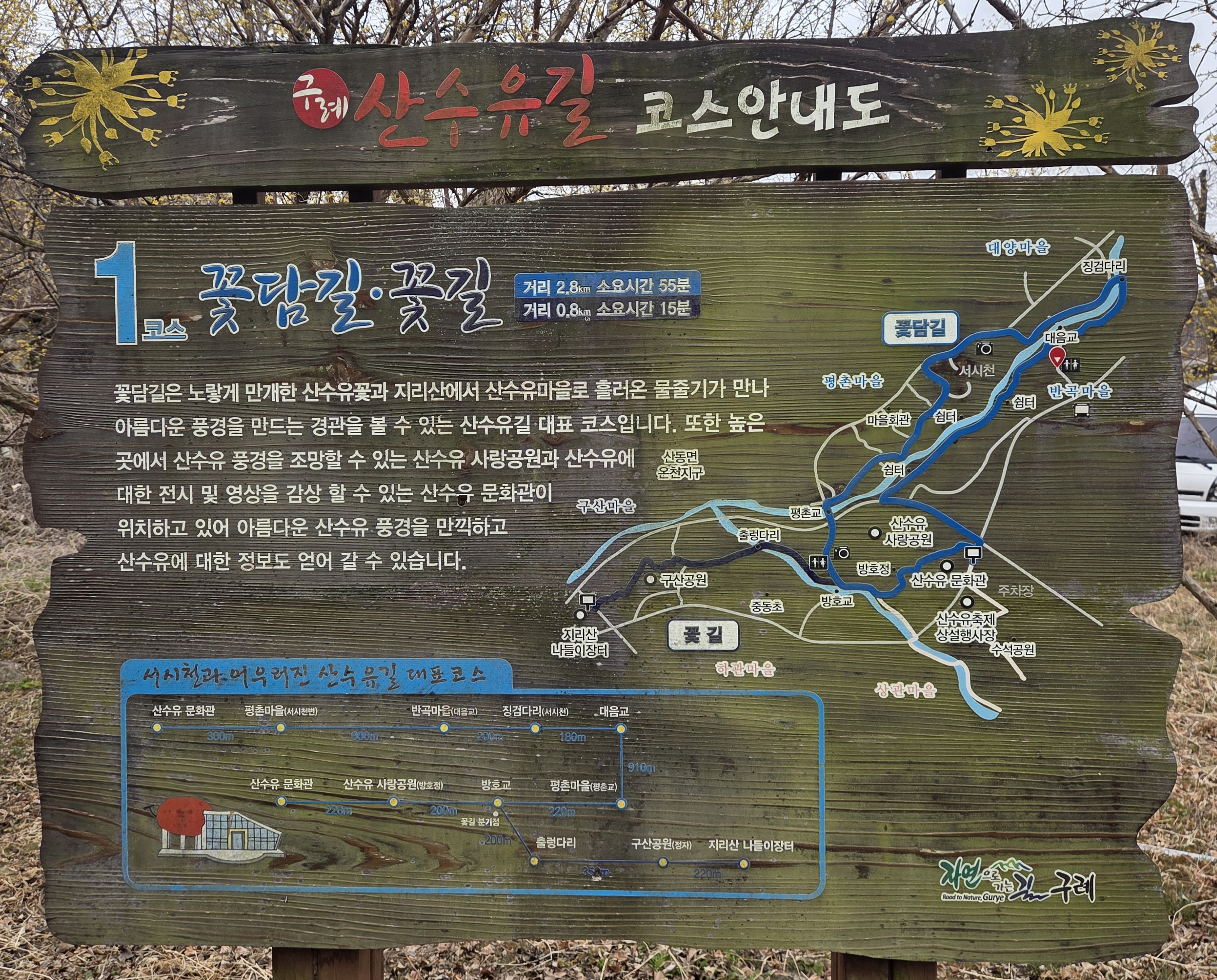 주차장 가기 전 길옆 공터가 있어 주차하고 산수유길을 따라 걸어내려갑니다