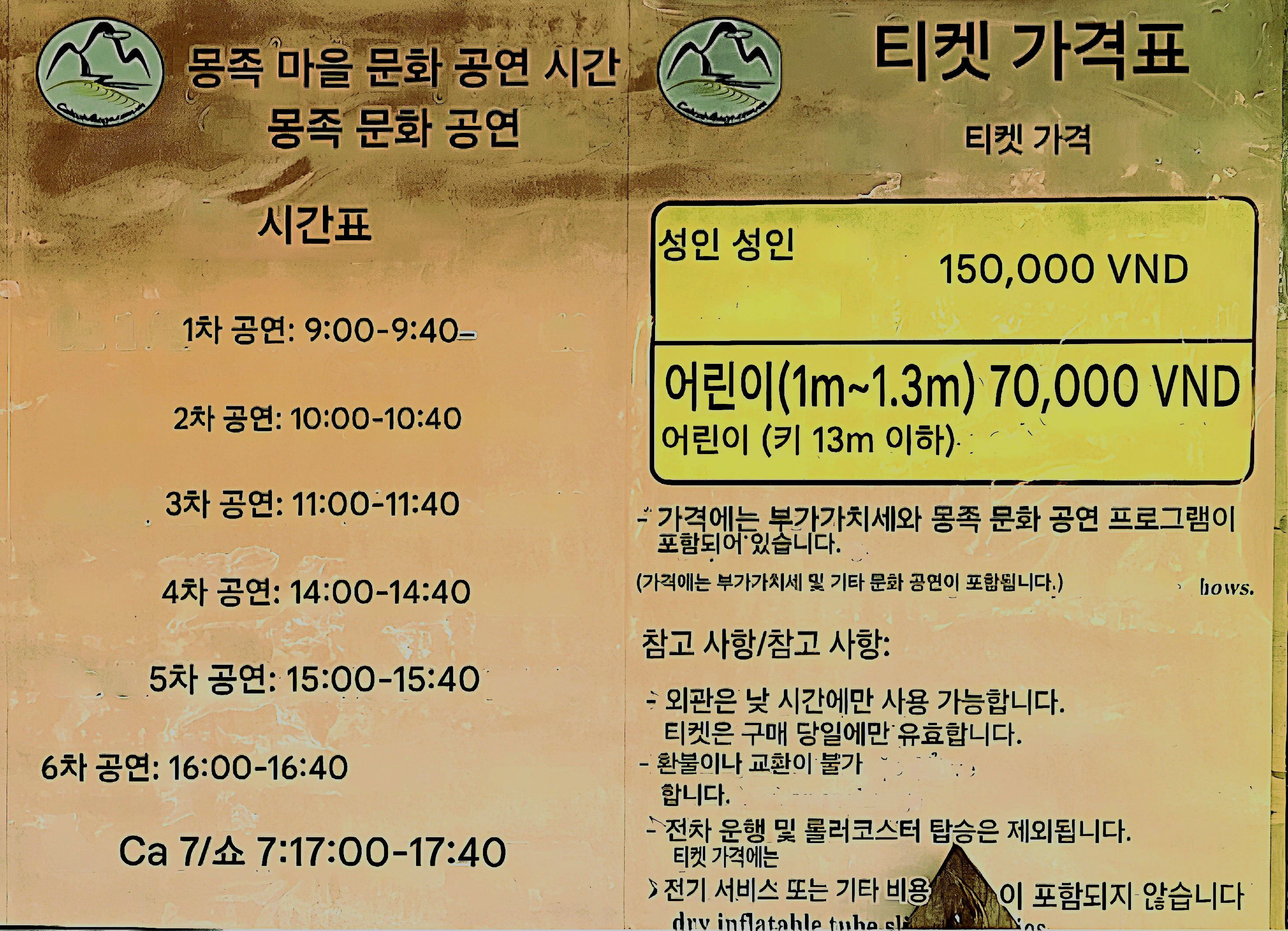 몽족문화 공연 관람은 7,500원 정도 하네요