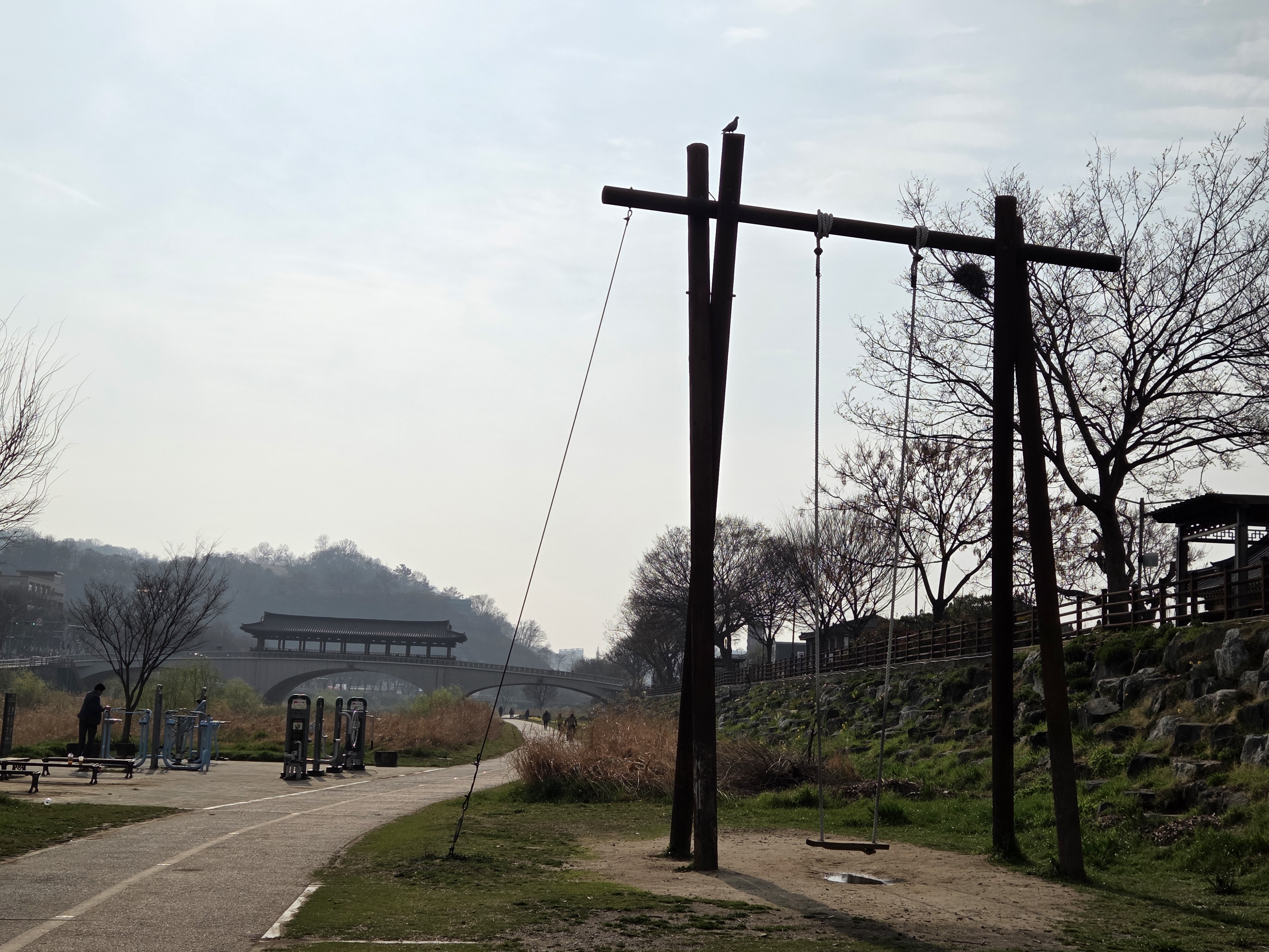 한옥마을 근처 고수부지 그네