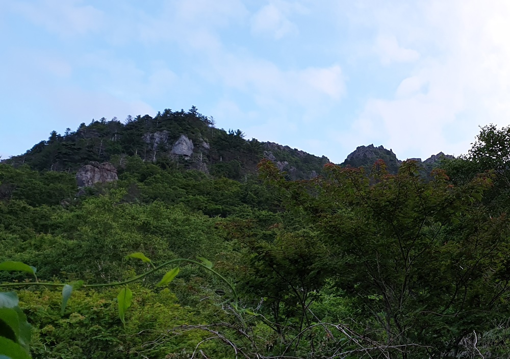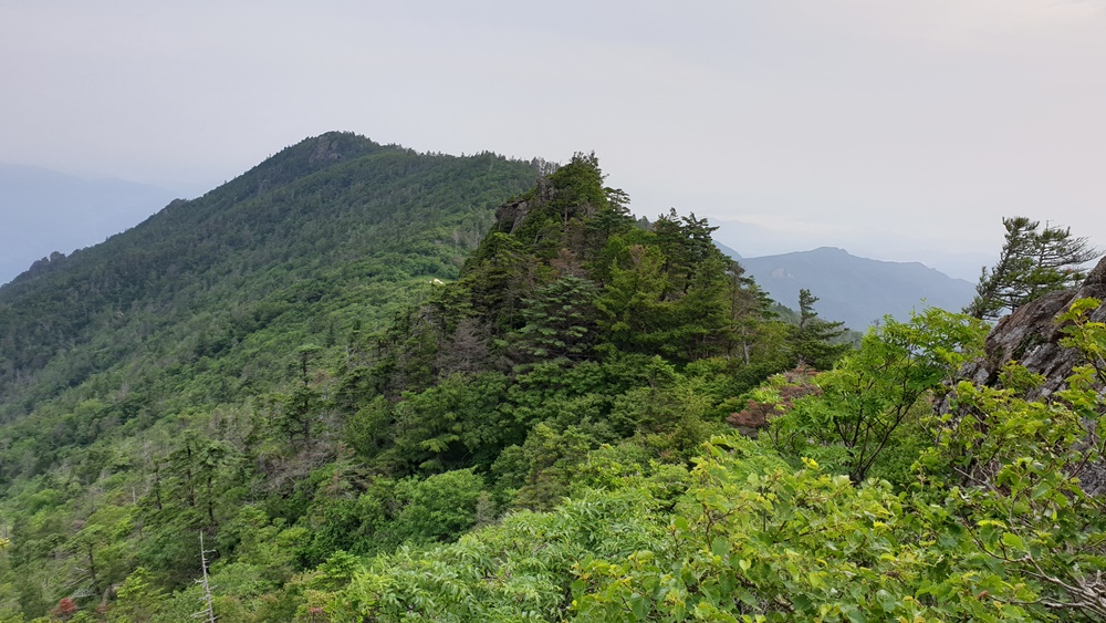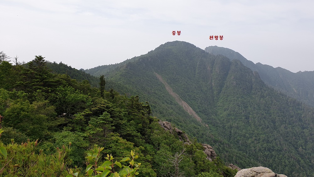 진주독바위에서 바라본 지나온길... 능선좌측 중봉과 하봉도 조망됩니다