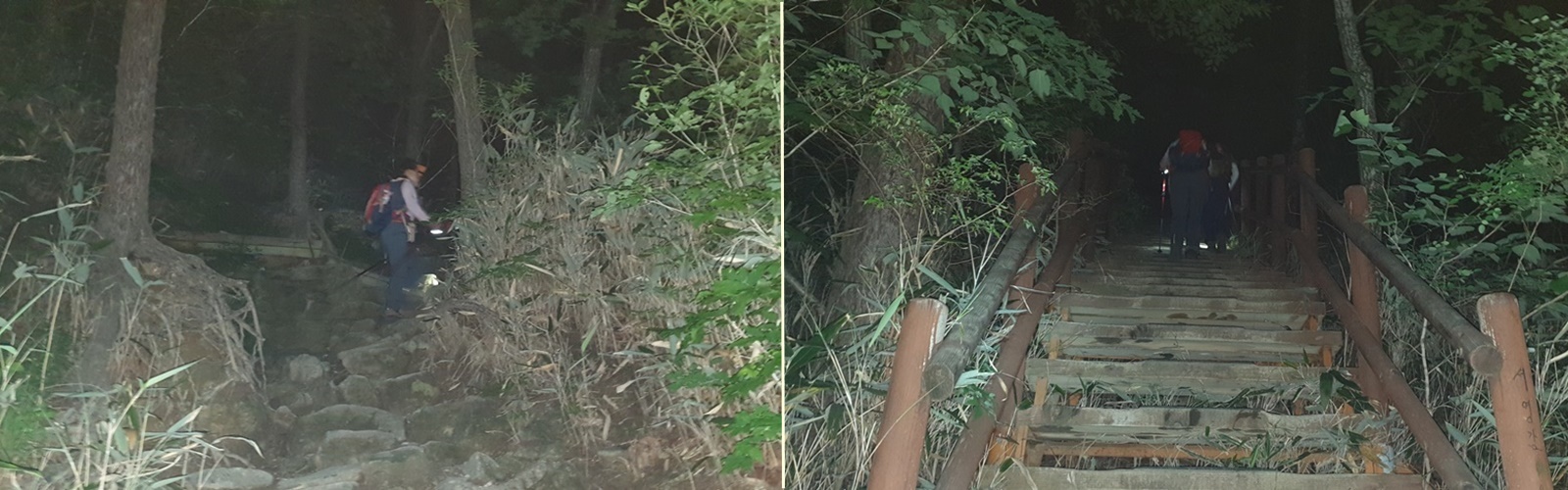 국립공원직원들이 제일 가까운 고개인 새재에서 올라와