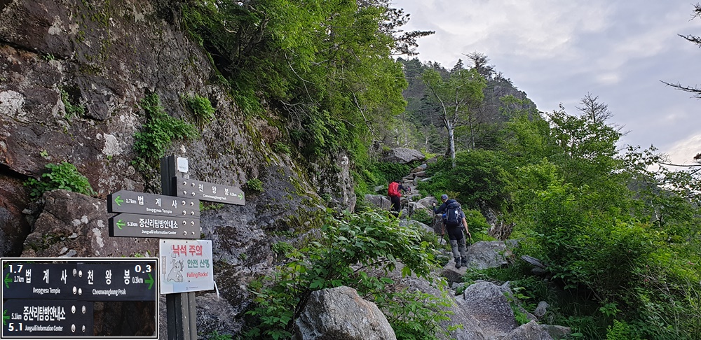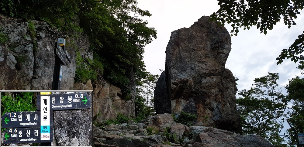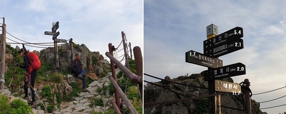 중산리야영장 이정표가 있는 삼거리에 이릅니다
