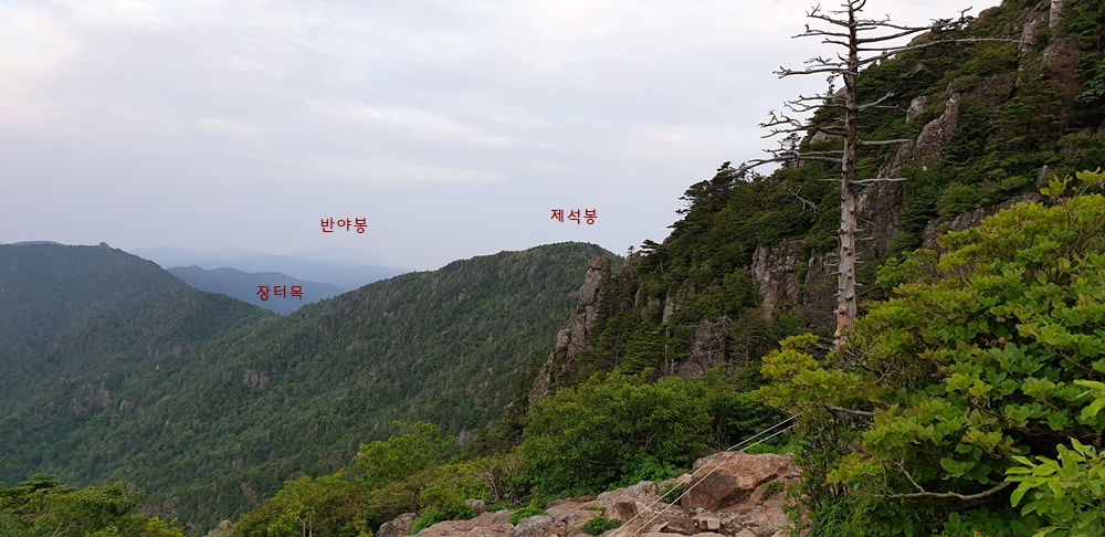 좌측 칼바위를 지나 장터목 또는 로터리대피소로 가는 길