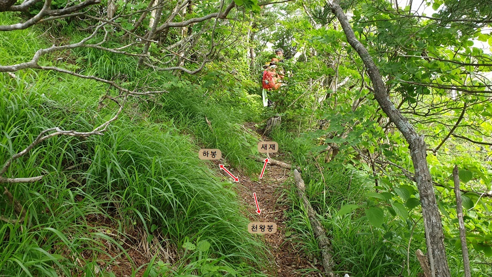 좌측으로 봉우리로 올라가는 길이 있으나 지나쳐 갑니다.