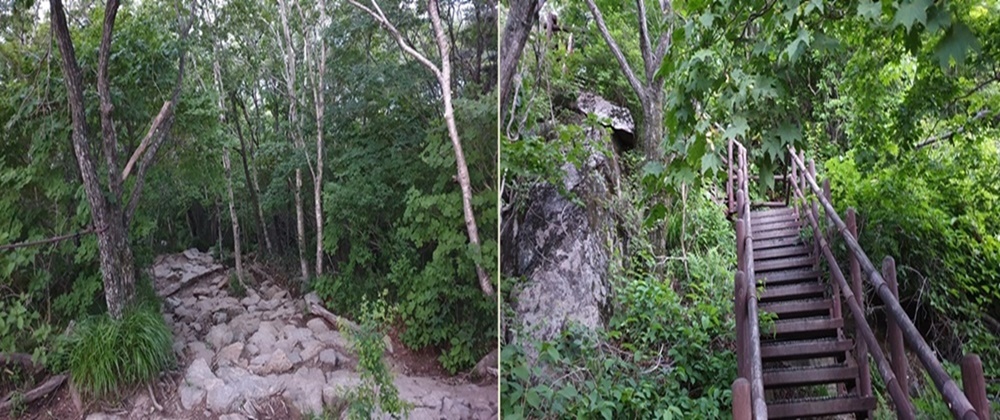 돌계단을 올라가고, 데크로 만든 계단도 올라고...