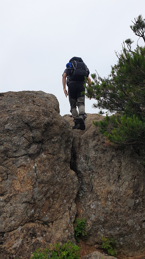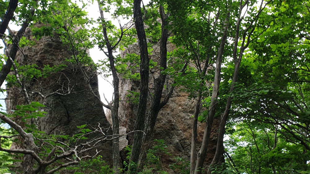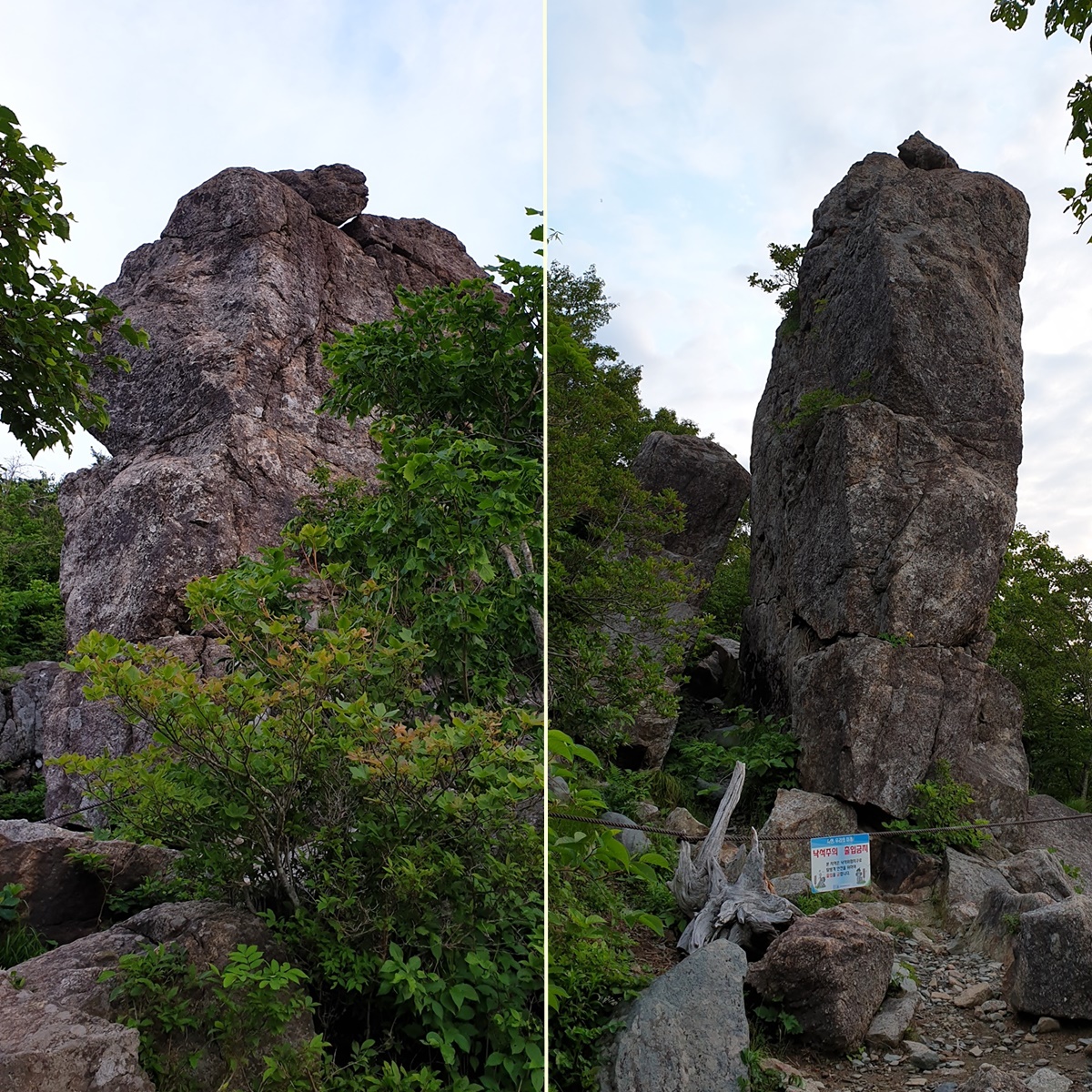오름길 좌측에 커다란 바위가 있는데 로우프가 쳐져 있습니다
