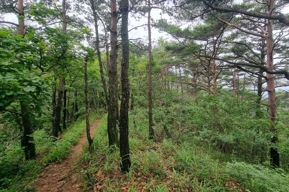 소나무 군락 아래로 잠시 완만하게 이어지는 길옆,
