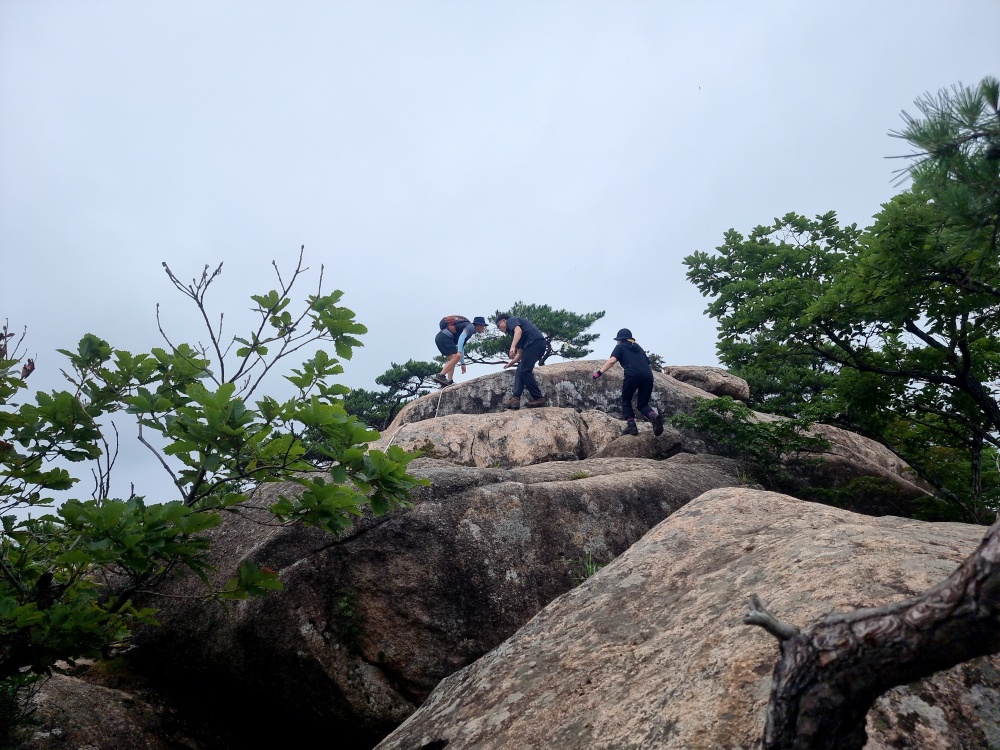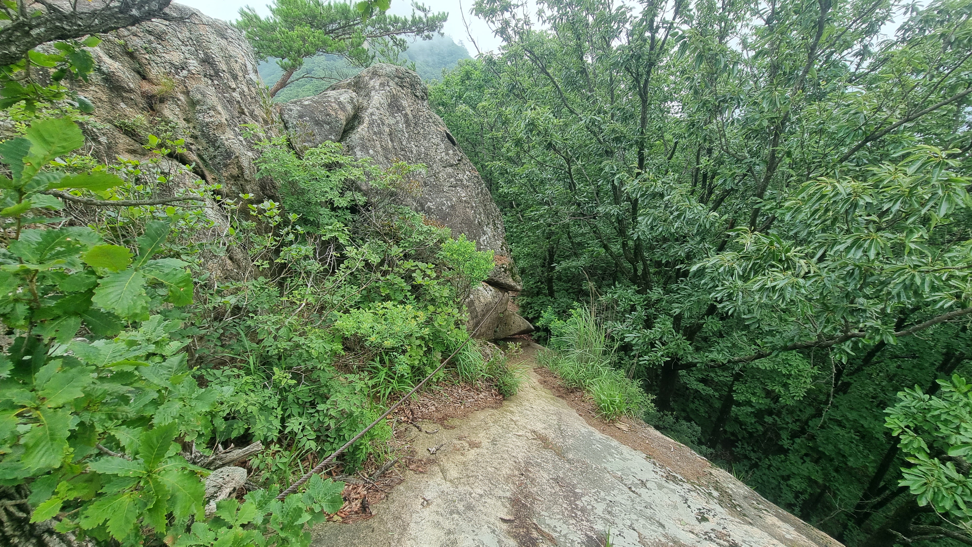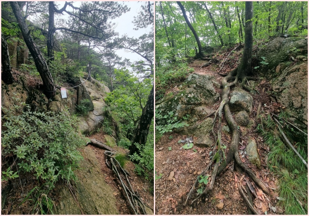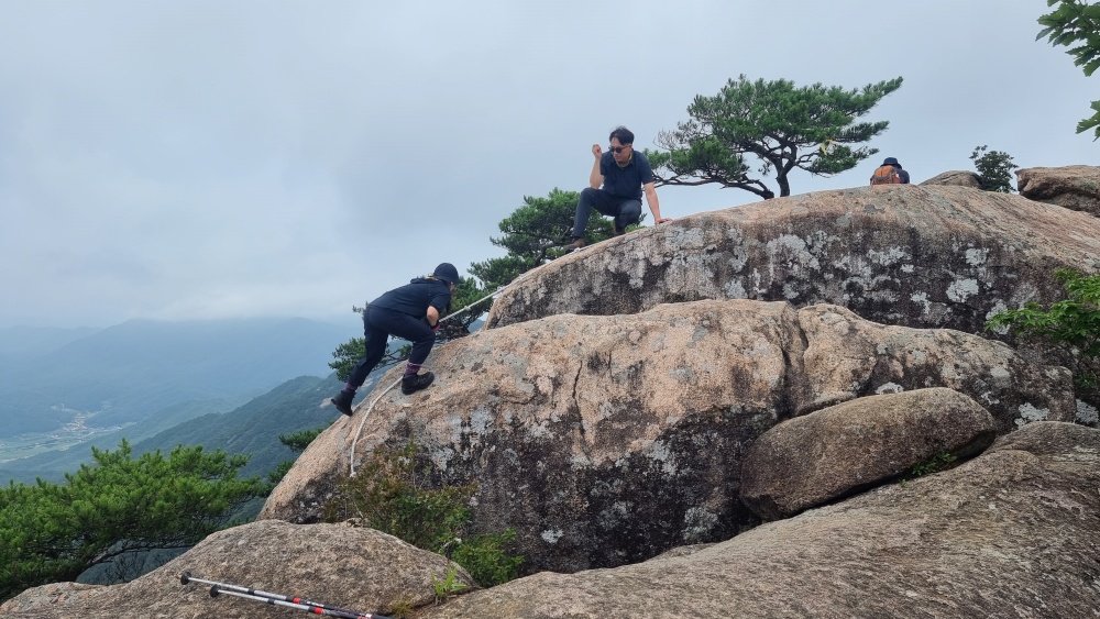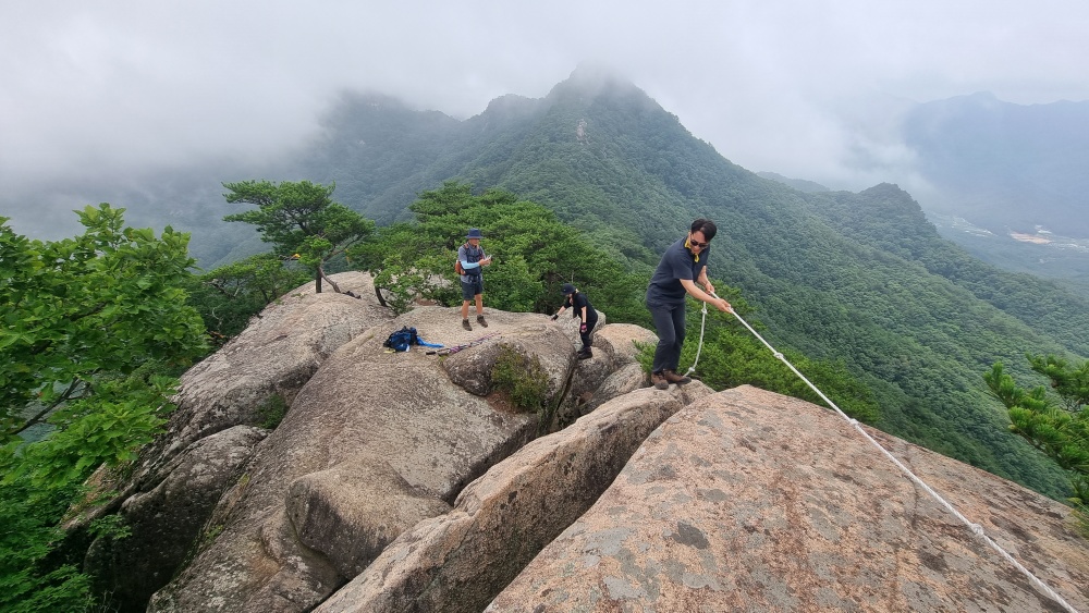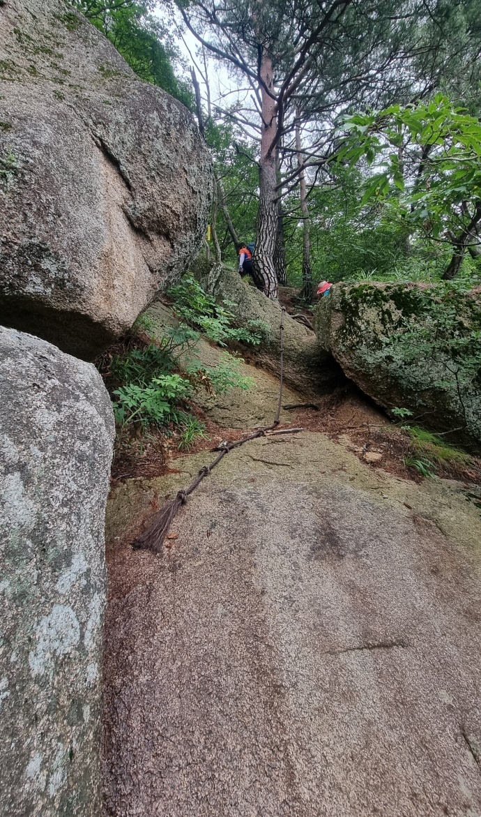 바위 슬립면을 올라가는데 로우프가 설치되어 있어 다행이네요