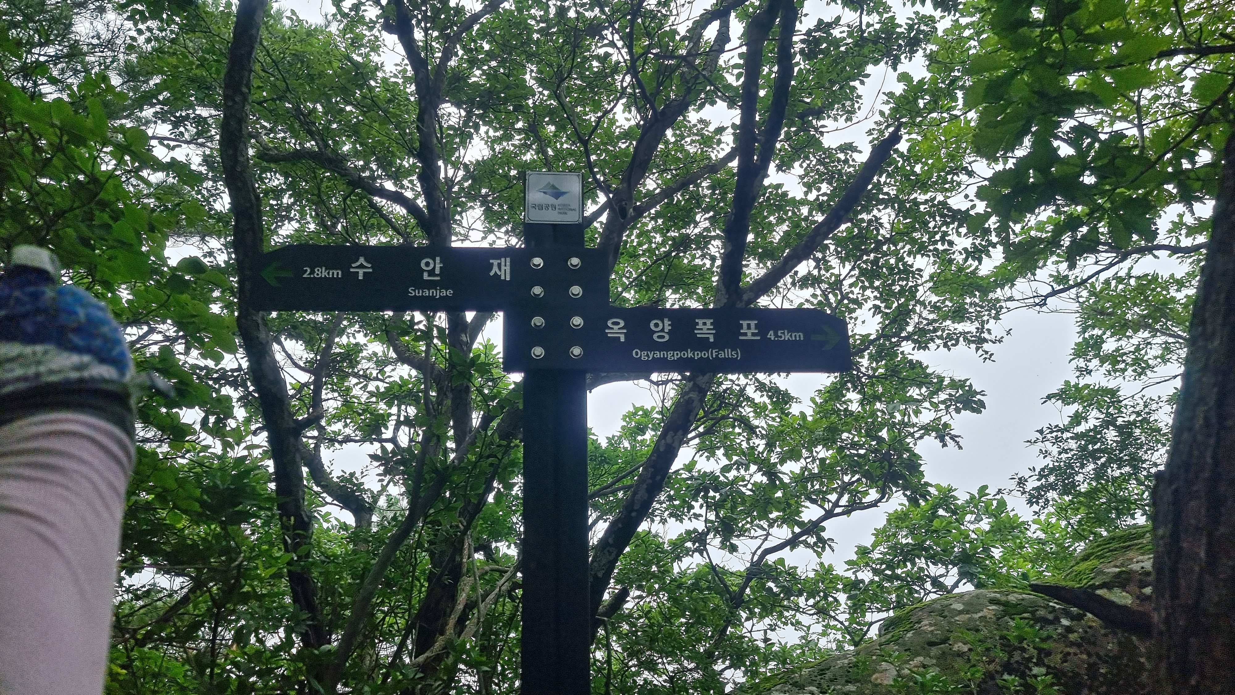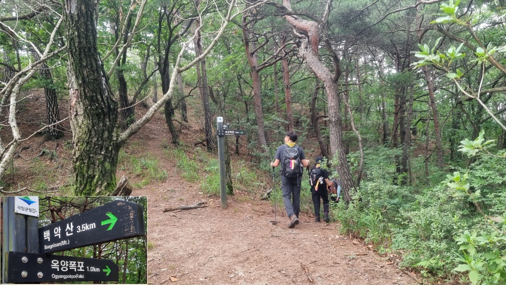 갈림길... 옥양폭포는 우측 사면을 따라 가라고 표기되어 있습니다.