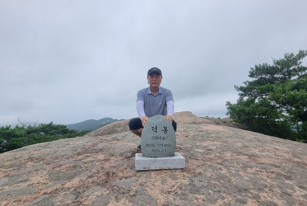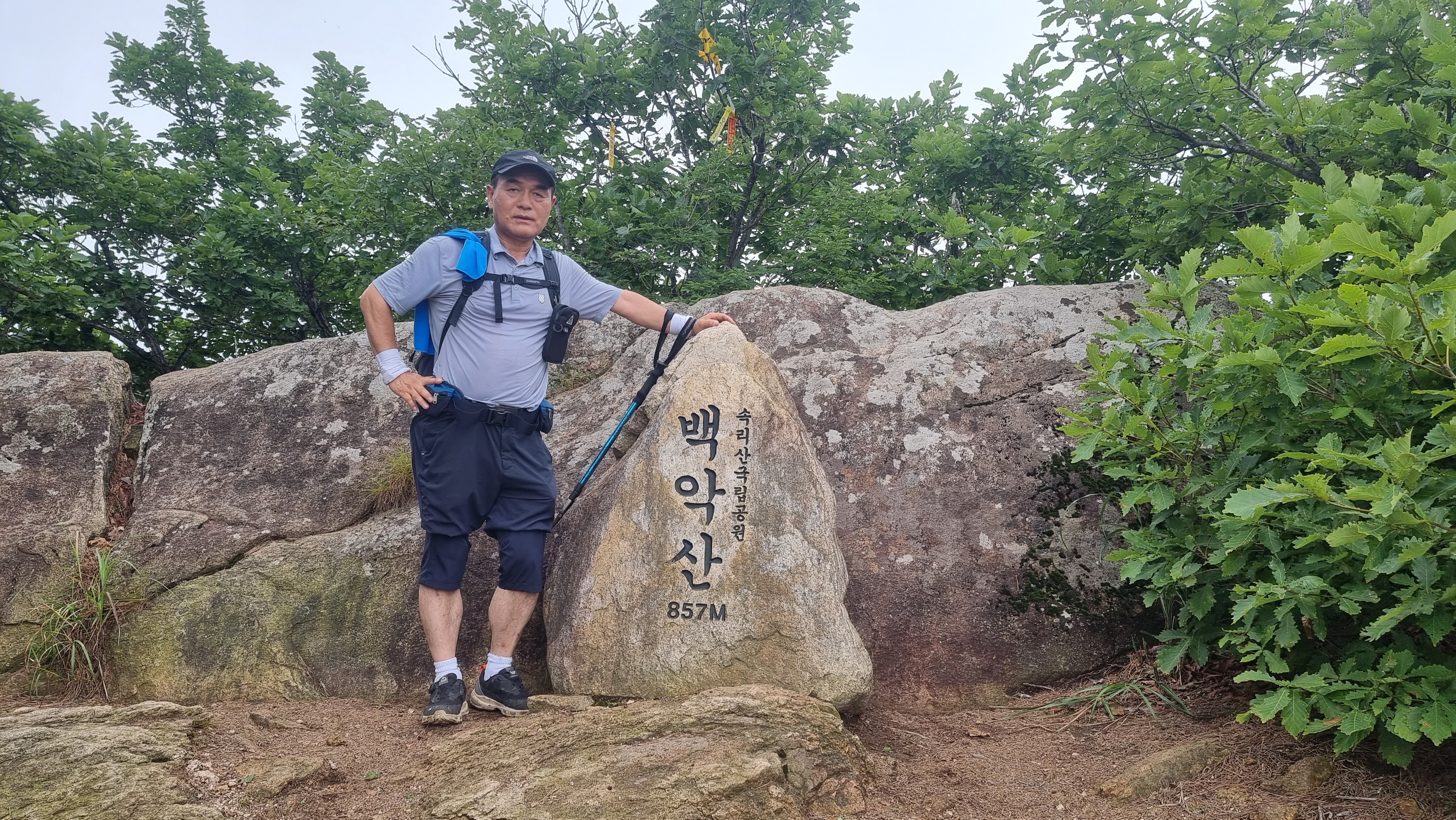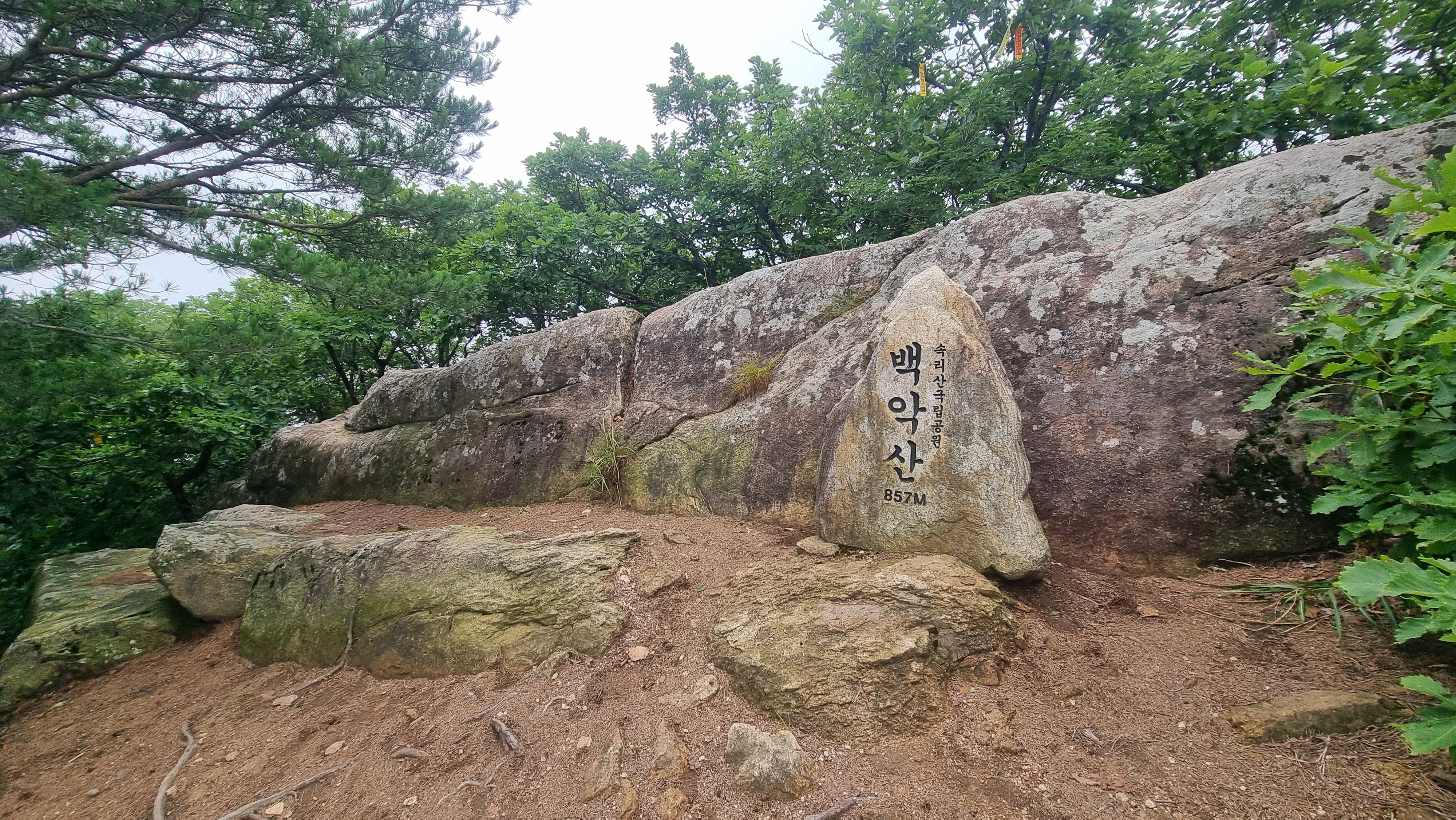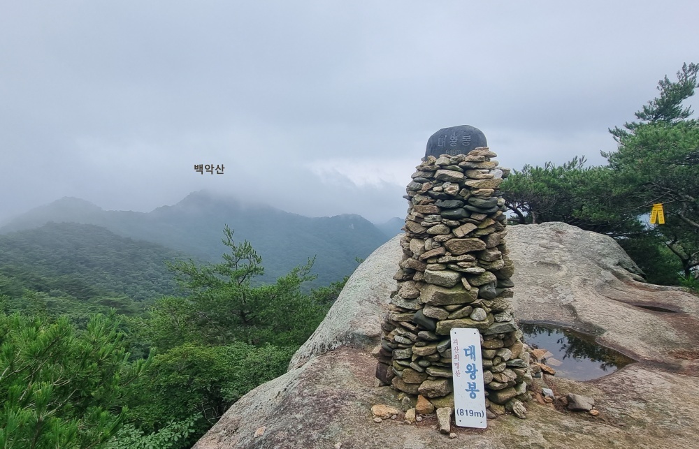 대왕봉 정상석 뒤로 백악산 조망됨