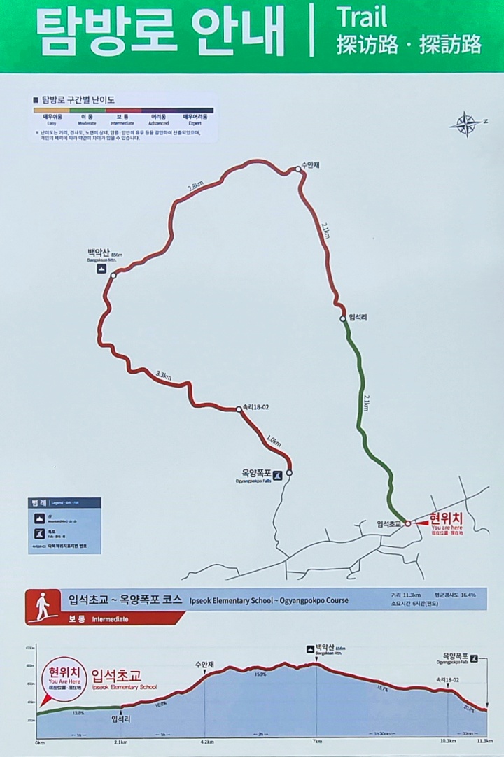 ☞ 다녀온 길 : 화북초 입석분교→ 수안재→ 대왕봉→ 덕봉(돔형바위)→ 백악산→ 옥양골→ 옥량폭포→ 석문사→ 입석교