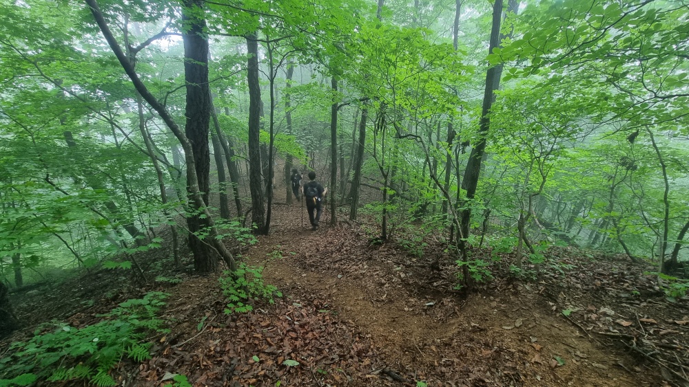 숲아래로이어지는 능선길이 육산이라 걷기가 좋습니다