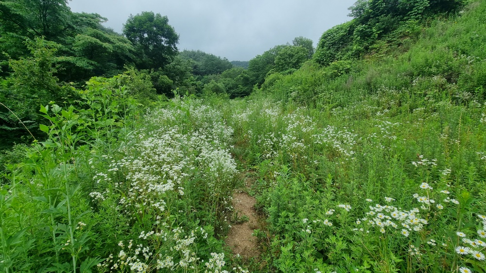 개망초가 도열하여 꽃을 피운 사이로 이어지는 길
