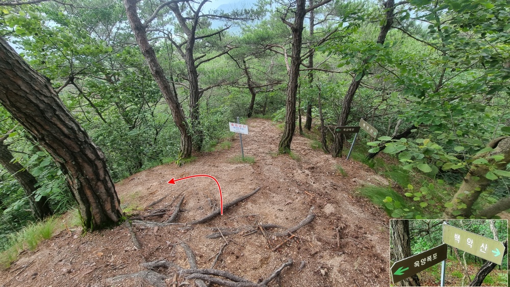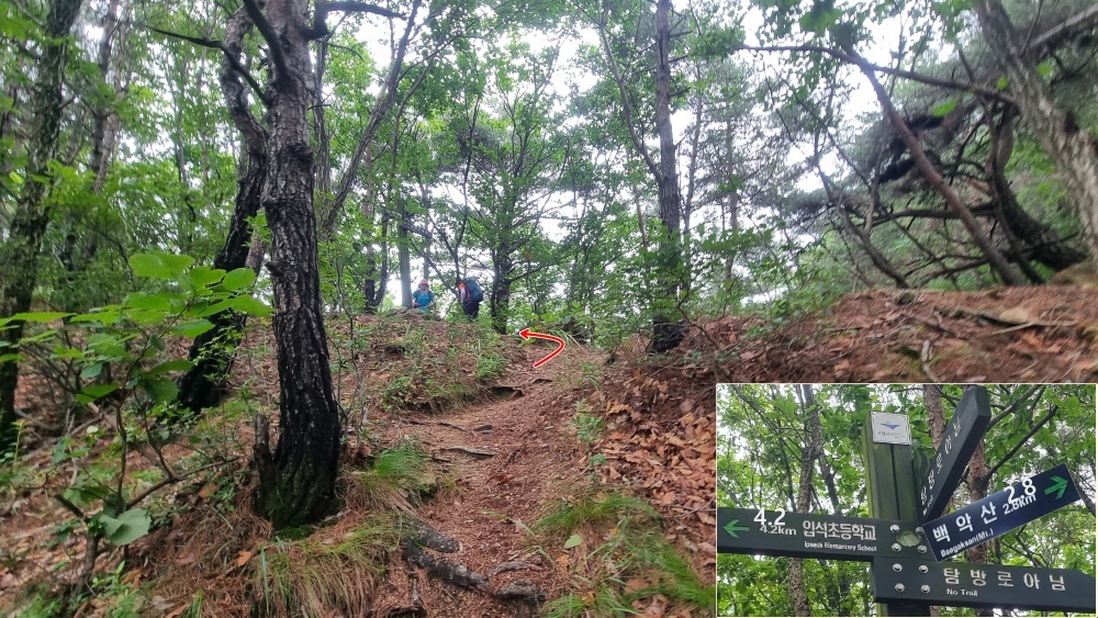 백악산은 좌측으로 이어지는 능선을 따라 가야 합니다