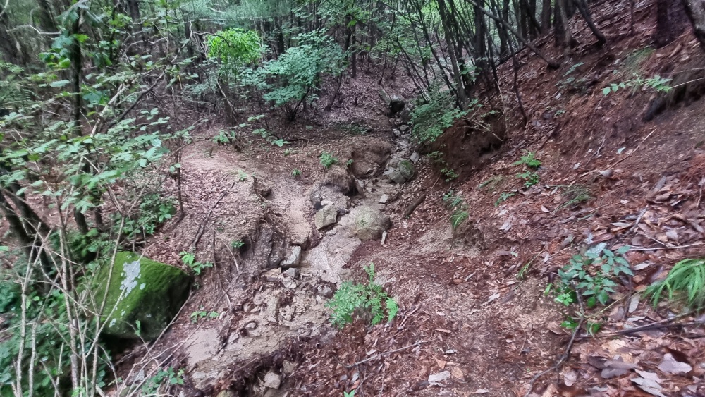우측 산비탈을 잠시 올라간 후 내려선 계곡 상부에는