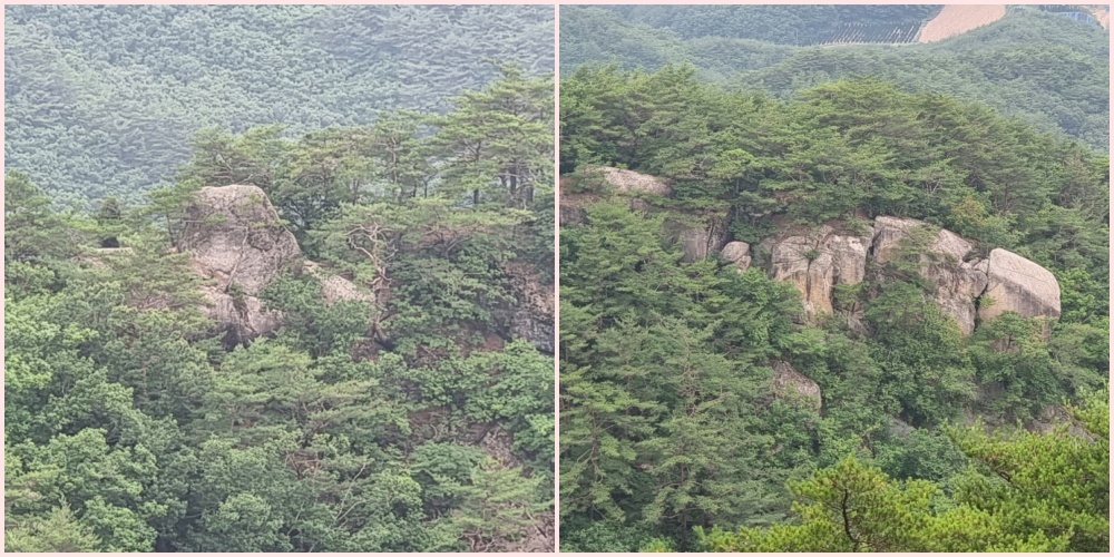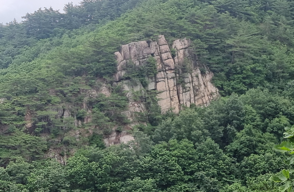 골짜기 건너편 능선에 있는 기암들