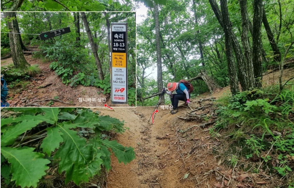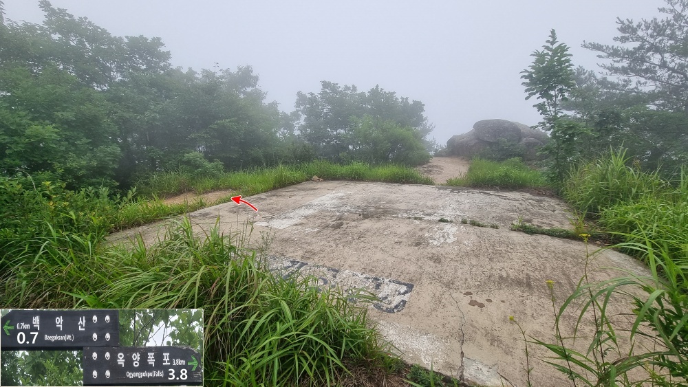 솥뚜껑바위 직전 이정표
