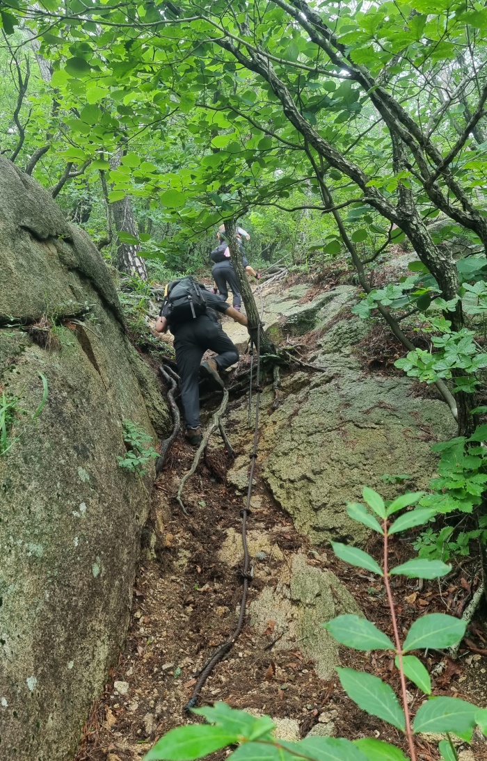바위를 오르기 위해 로우프가 설치되어 있고