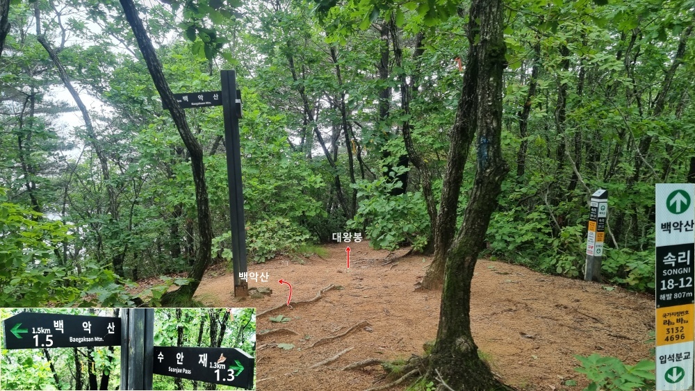 * 11:09 - 대왕봉 갈림길(대왕봉 표기없음, 수안재 1.3km / 백악산 1.5km)