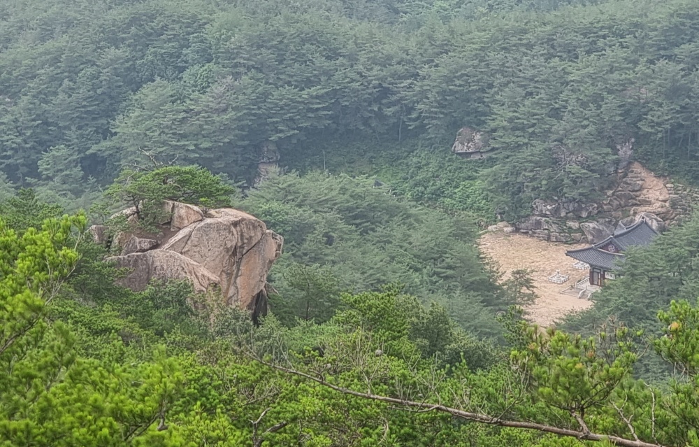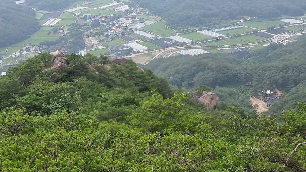 암봉에서바라본 풍경... 우측아래 석문사 대웅전도 보입니다