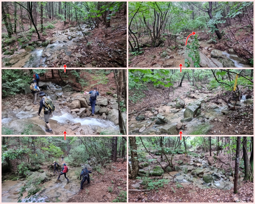개곡을 건너갔다 건너오길 몇차례