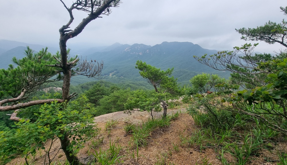 부처바위 뒤 소나무가 있는 암반에서면 조망이 좋습니다.