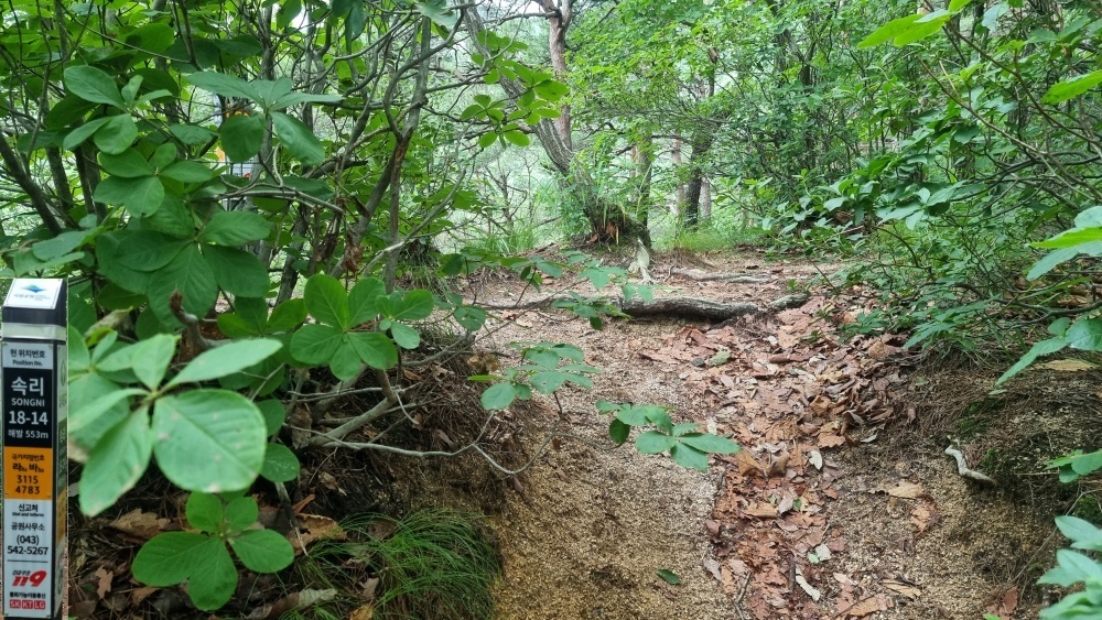 이정표와 위치표 '속리 18-12'가 세워져 있습니다