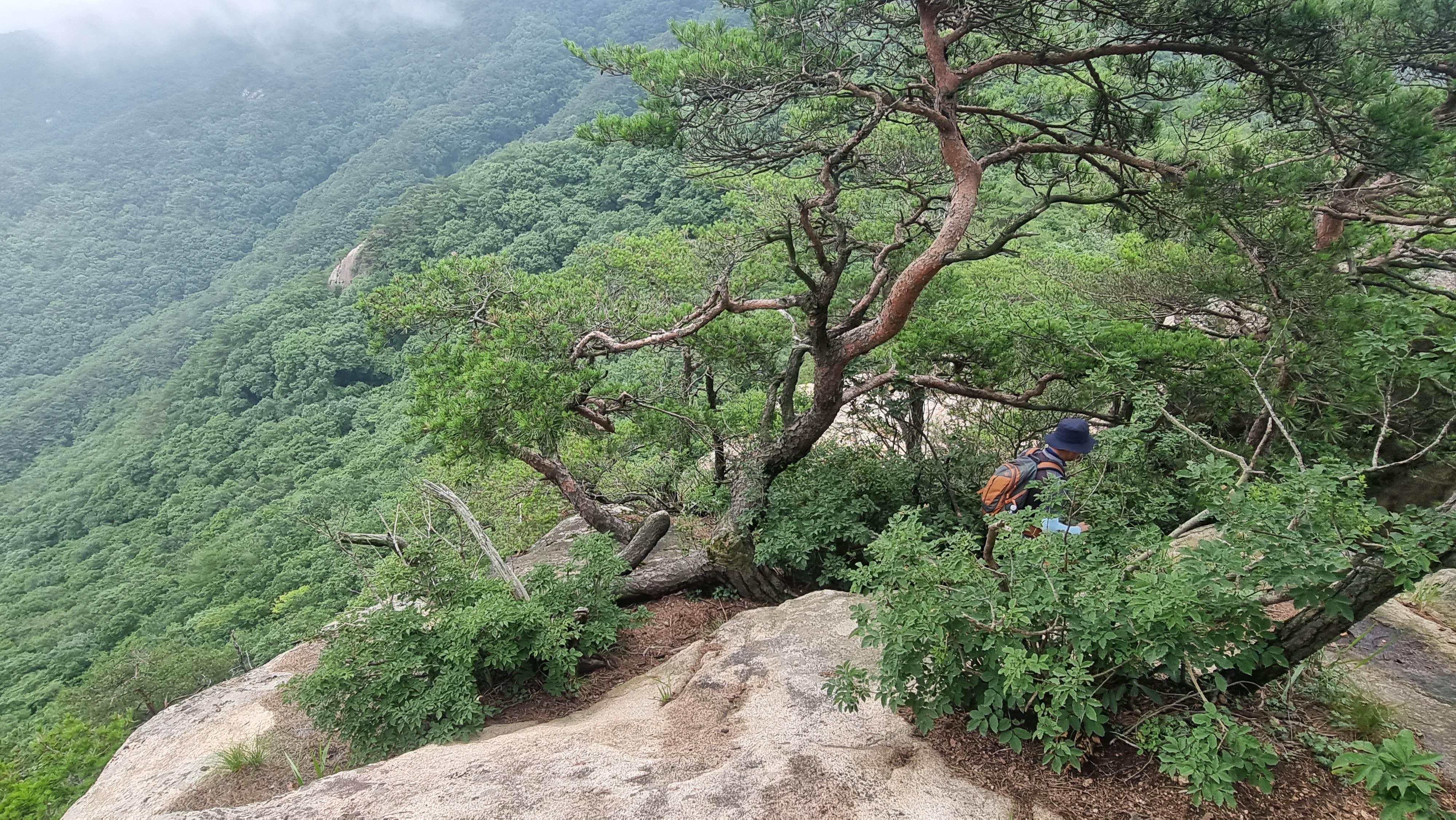 오름길이 봉우리 이르니 기암아래 우측사면을 따라 갑니다