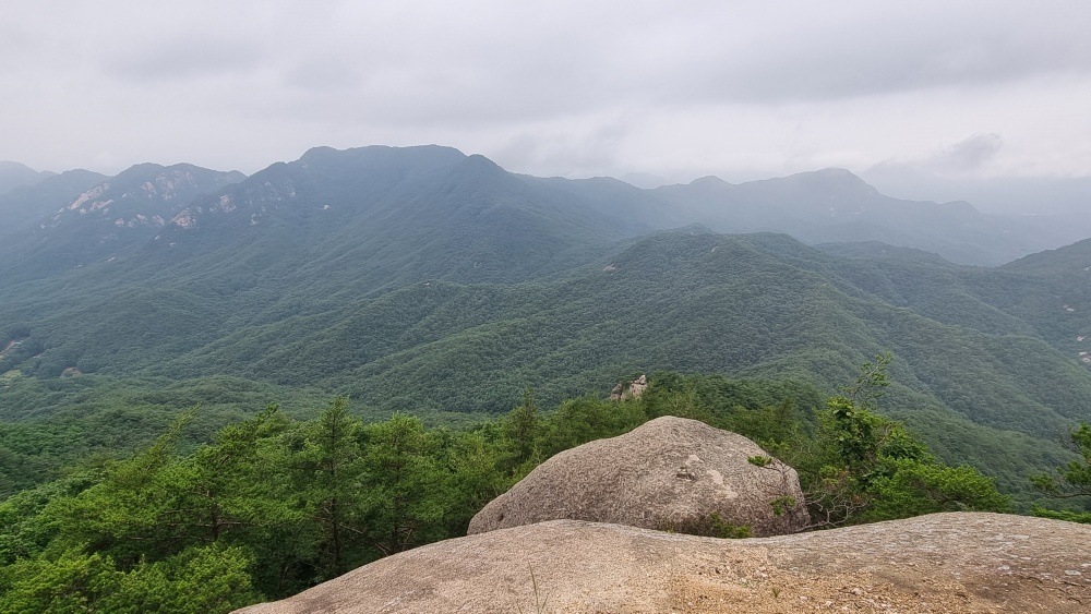 헬기장 지나 능선끝 작은바위 조망터