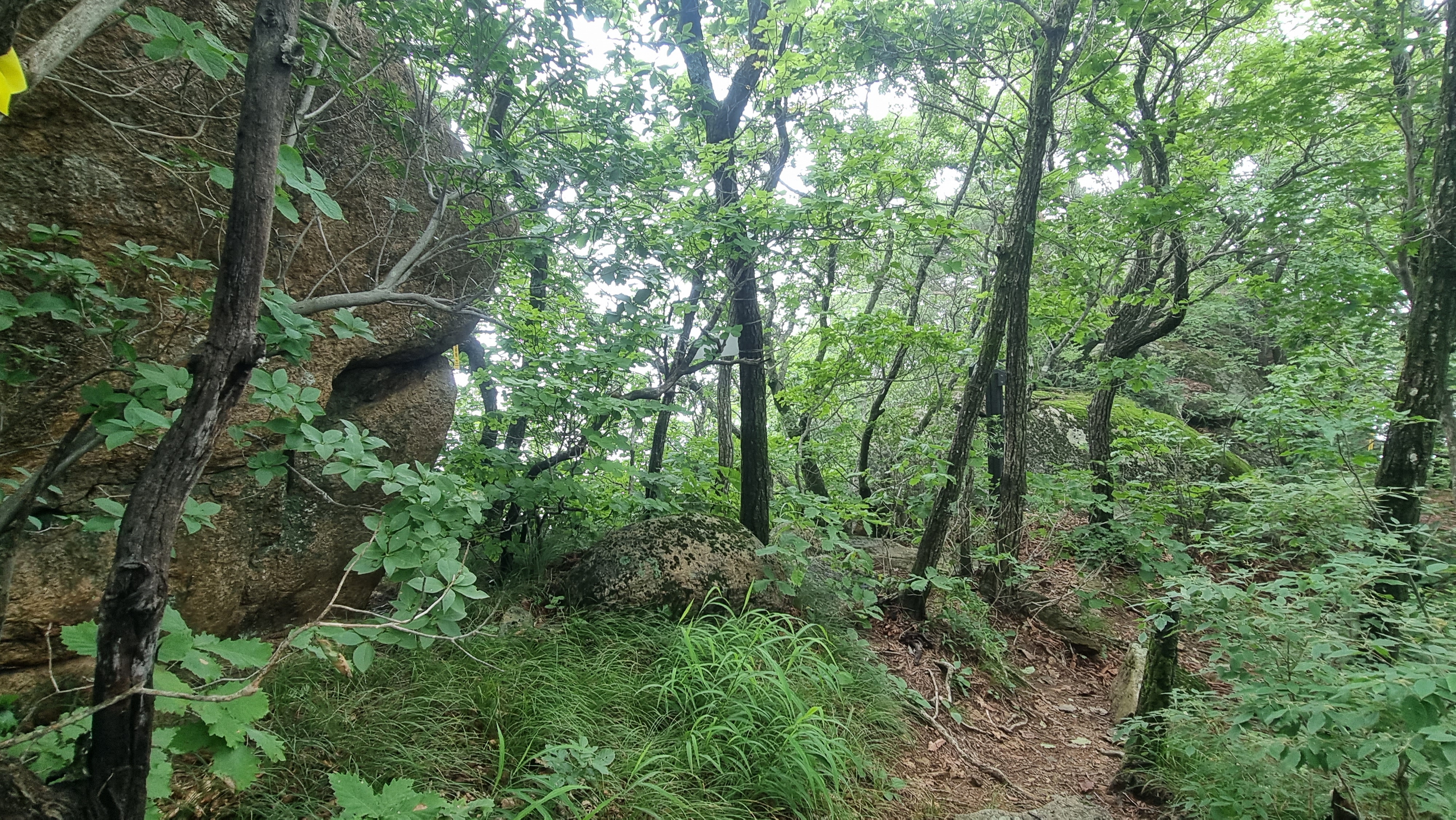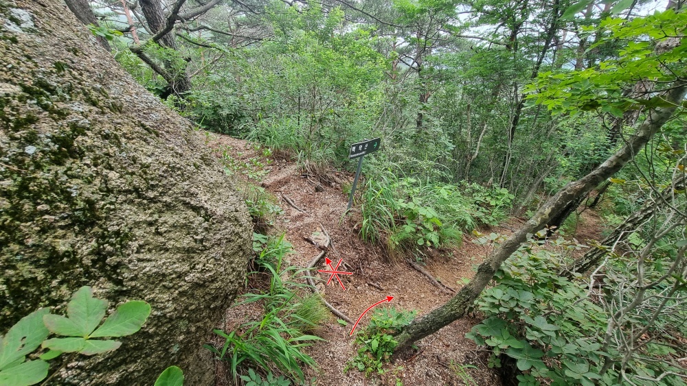 정상적인 등로를 만나 잠시 내려가니 커다란 바위로 이어지는 길이 좌측에 있네요