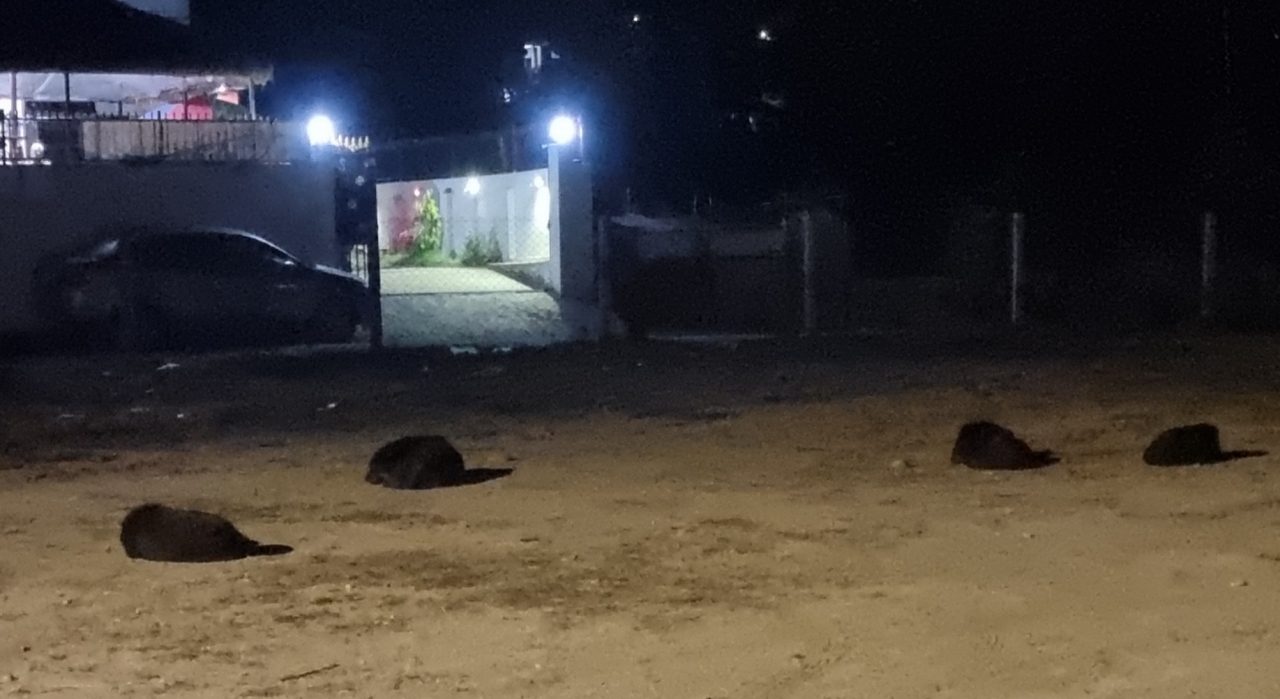비행장 앞 공터에는 개들이 잠을 자고 있습니다