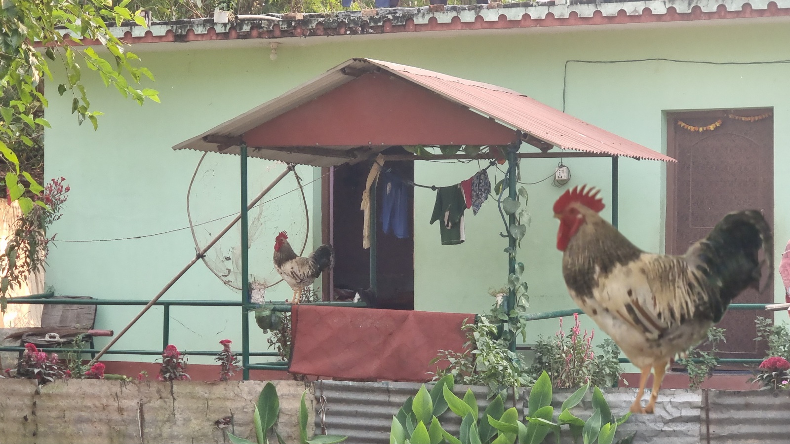 동네를 둘러보던 중 멋진 장닭 포즈를 취하고 있네요