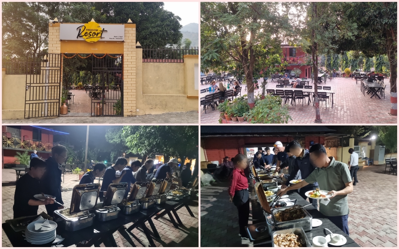 희말라야 드리샤 리조트에 점심을 먹습니다