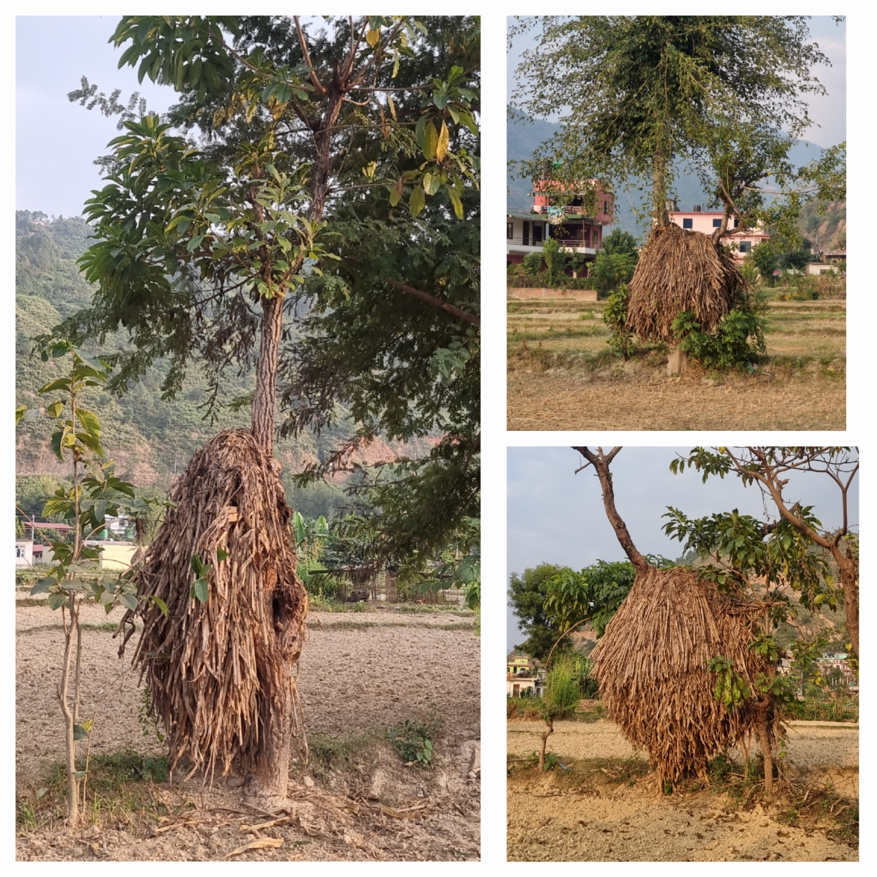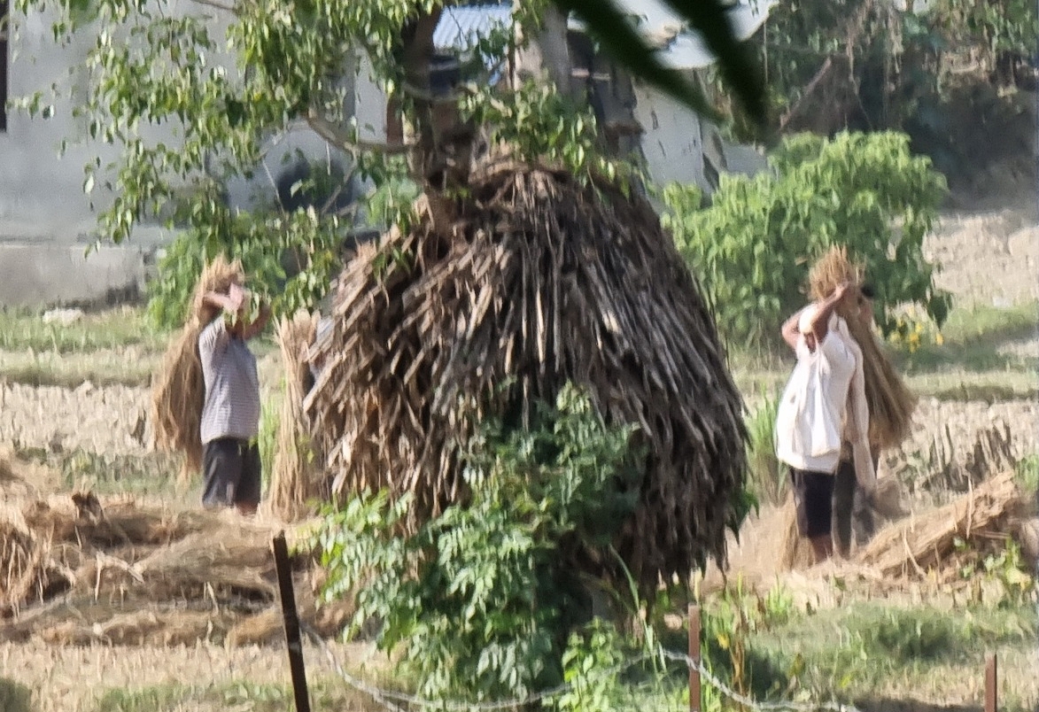 옥수수대를 나무에 걸쳐 말린답니다. 가축먹이로 쓰려고..