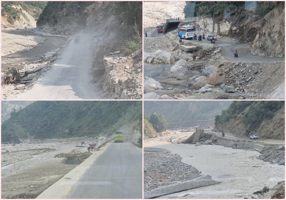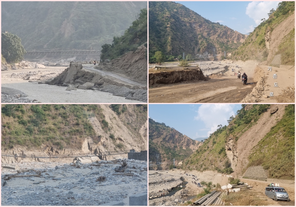 산허리를 따라 가던 도로는 유실되고, 교량도 파손되고...