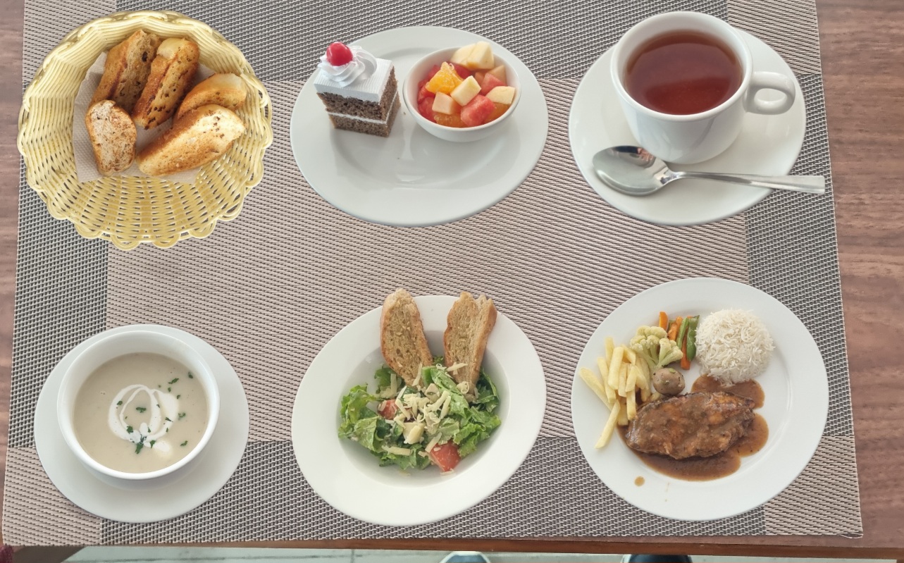 비행기 운항시 연락을 주기로 해 우리는 인근 리조틀에가 점심을 먹고 휴식을 취합니다
