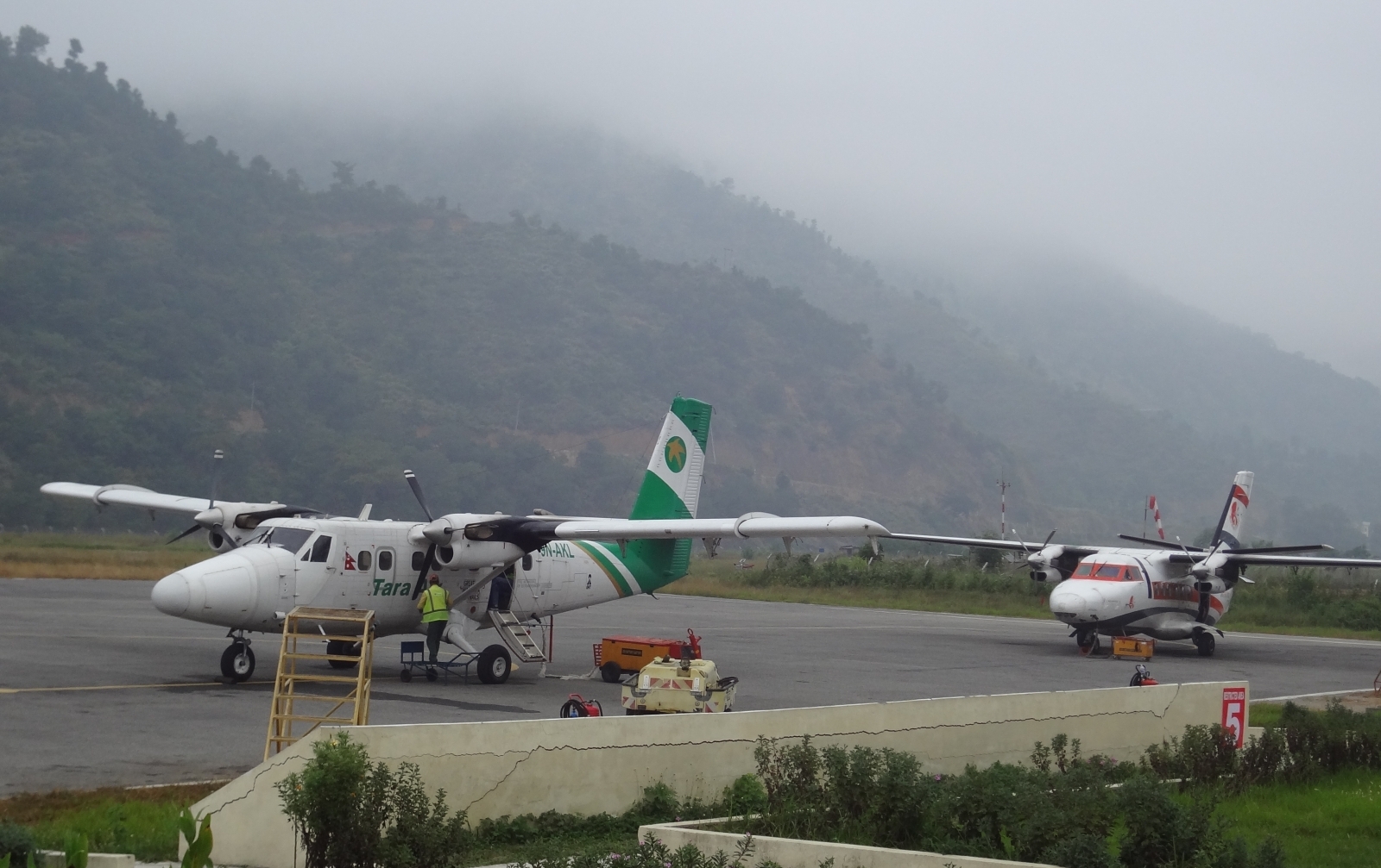 마침내 루크라를 향해 비행기 2대가 날아올랐습니다