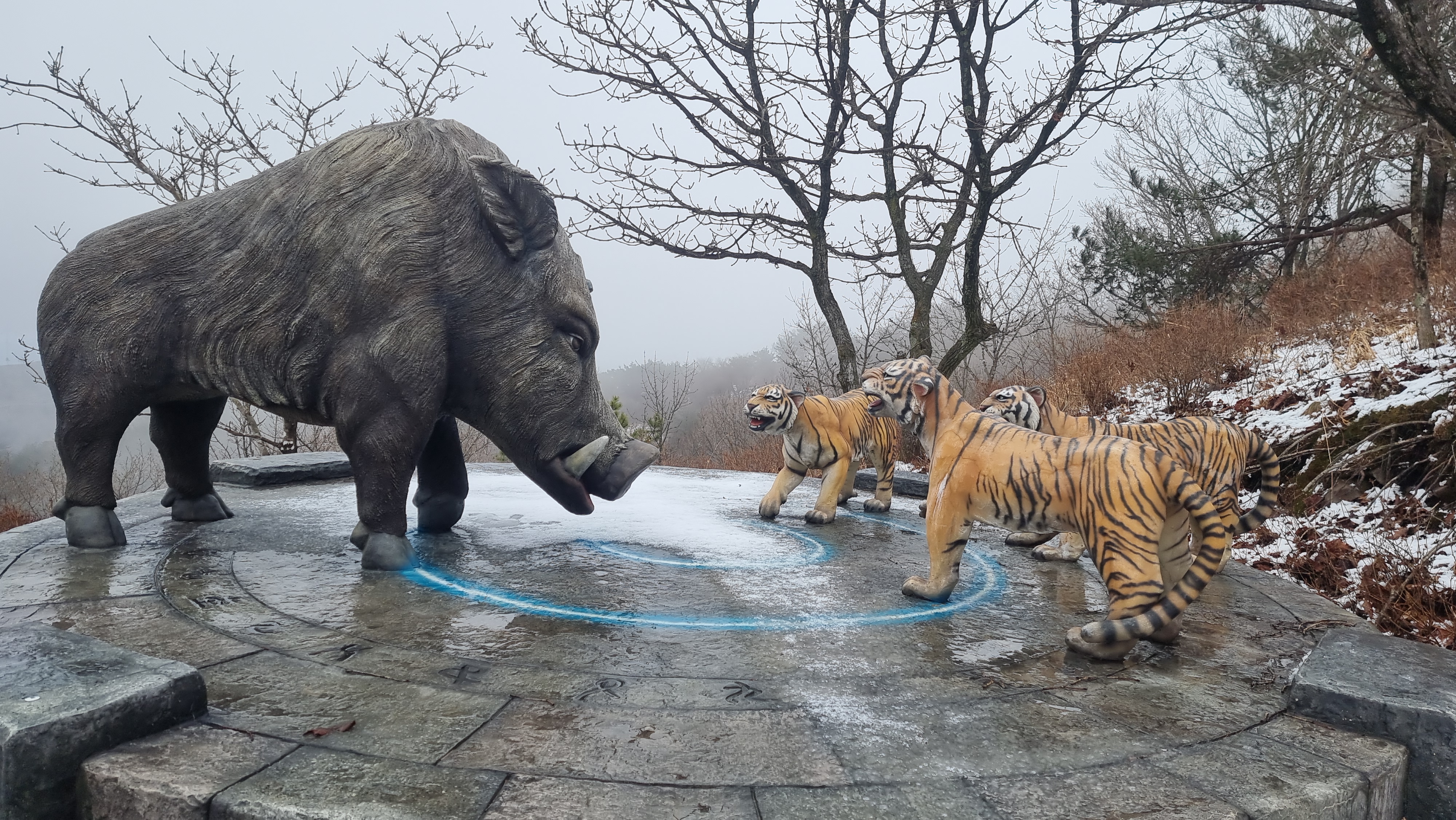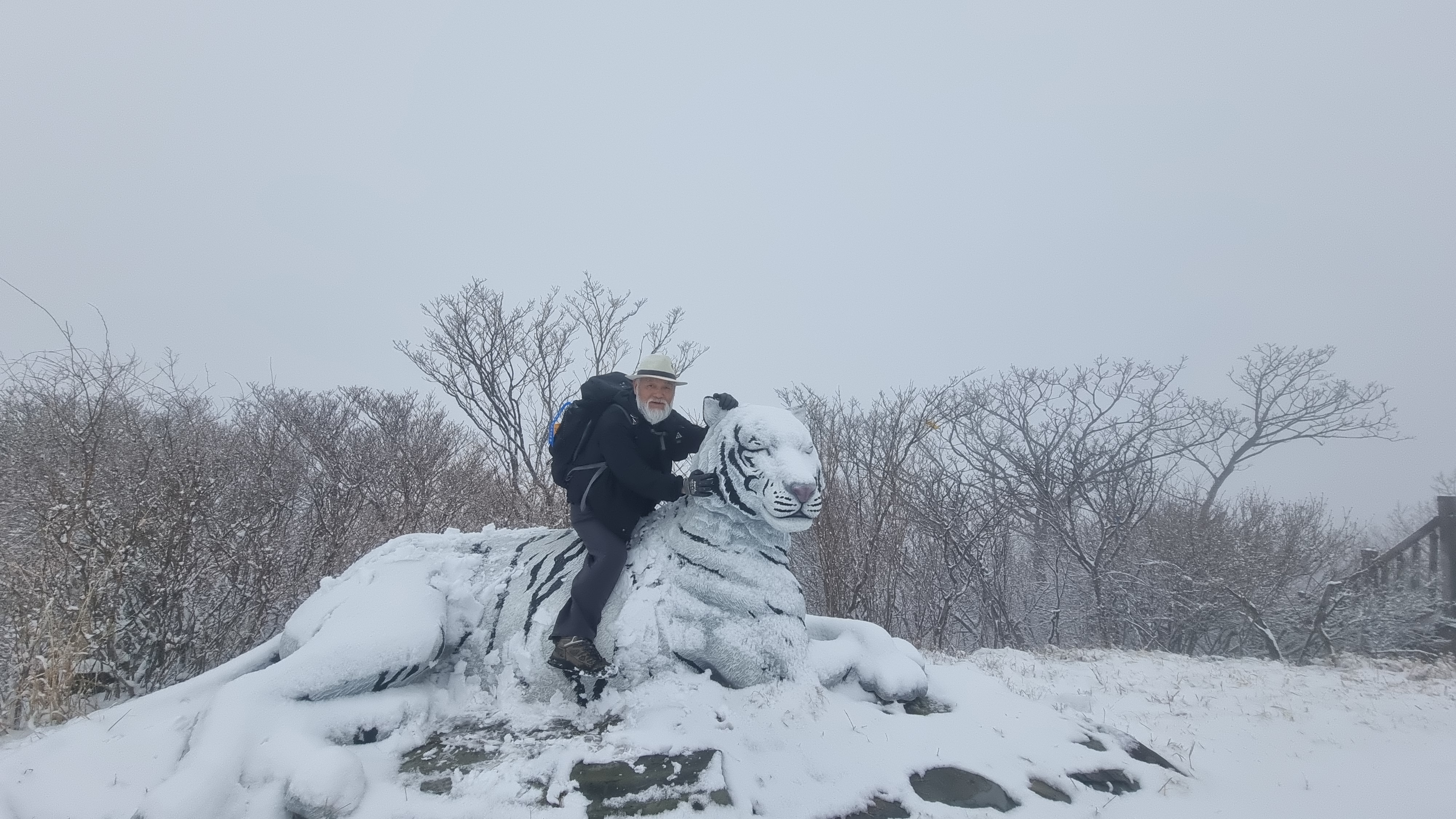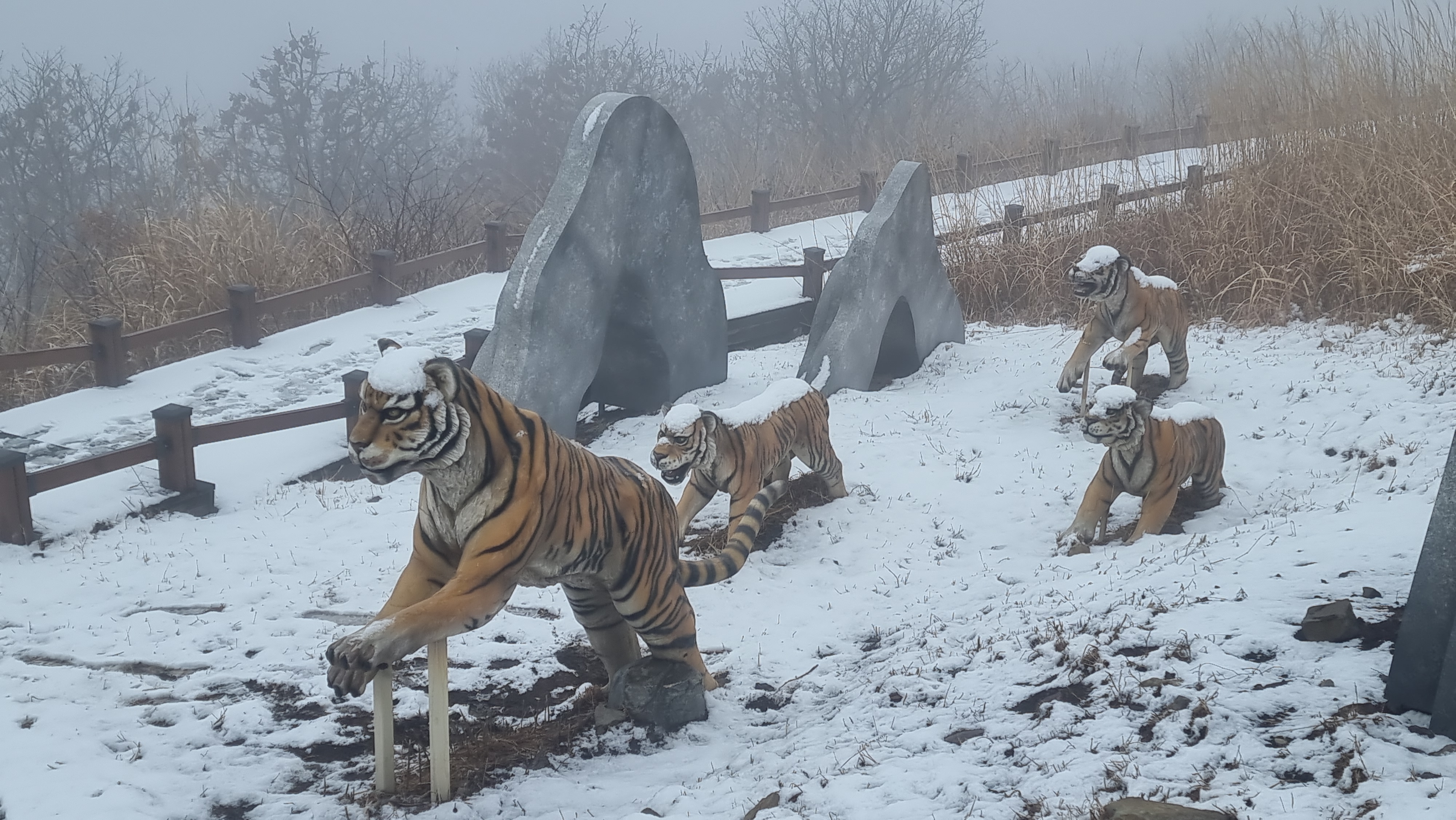 눈 맞은 호랑이 등에 올라 타고 달려보세