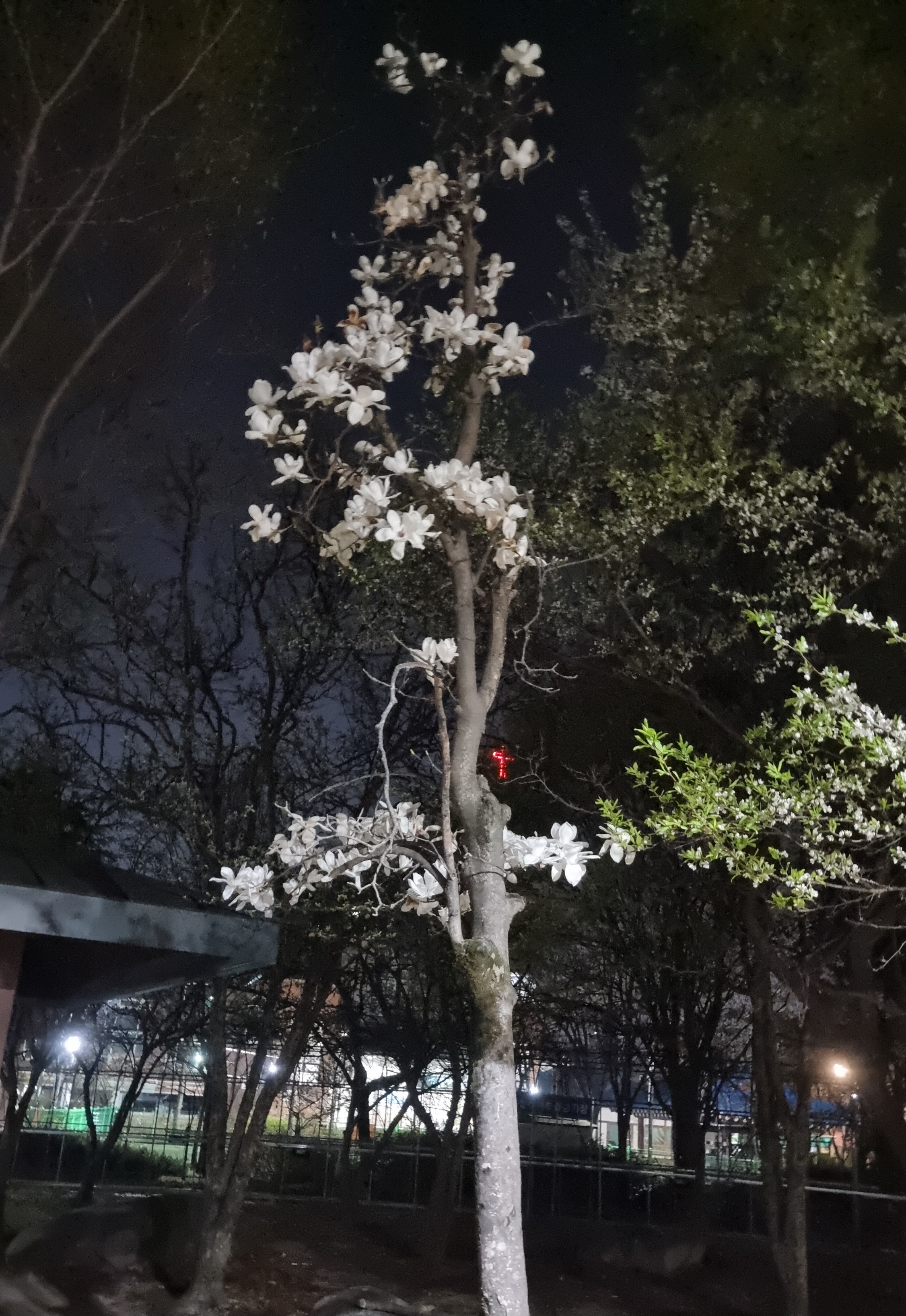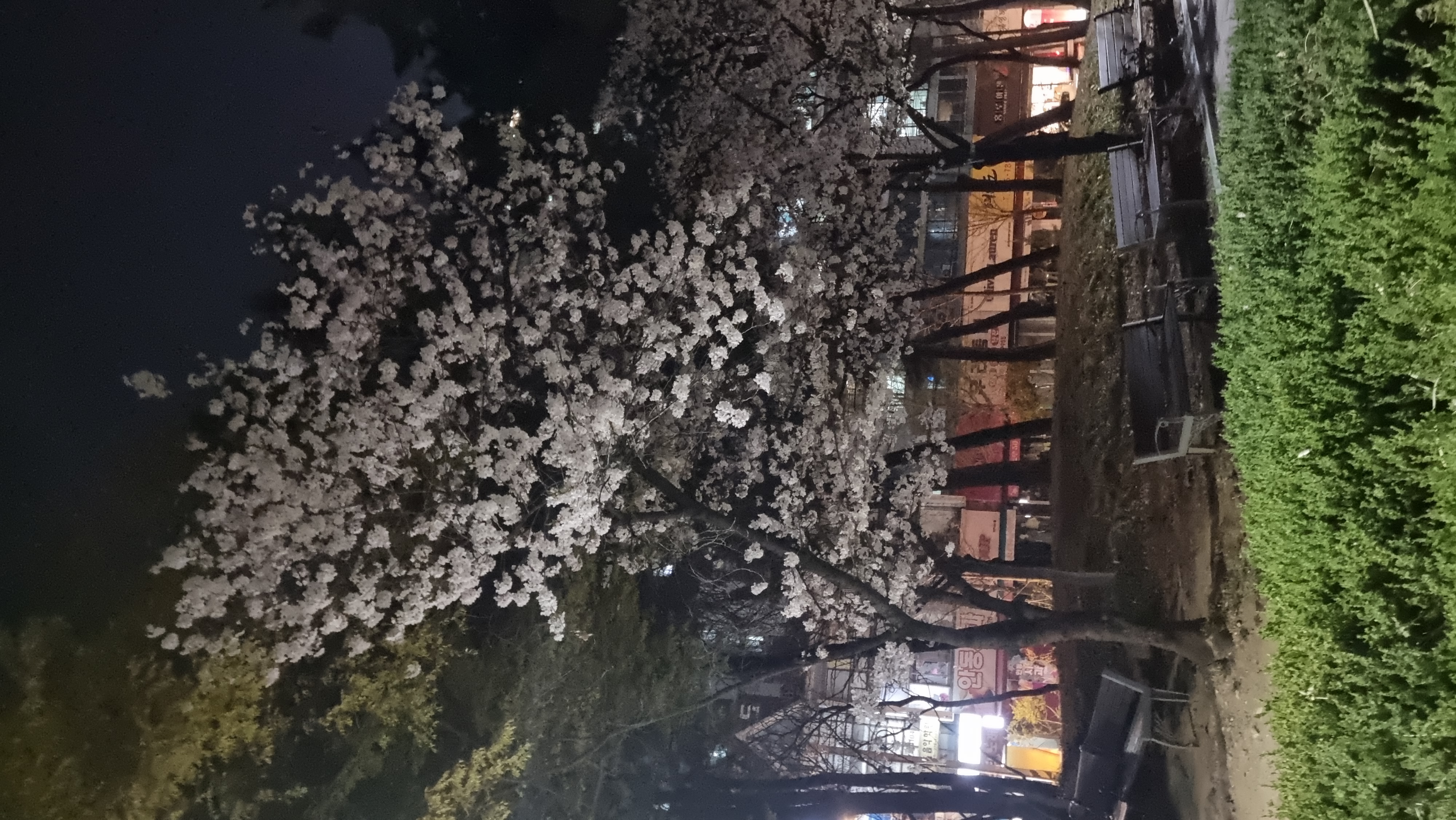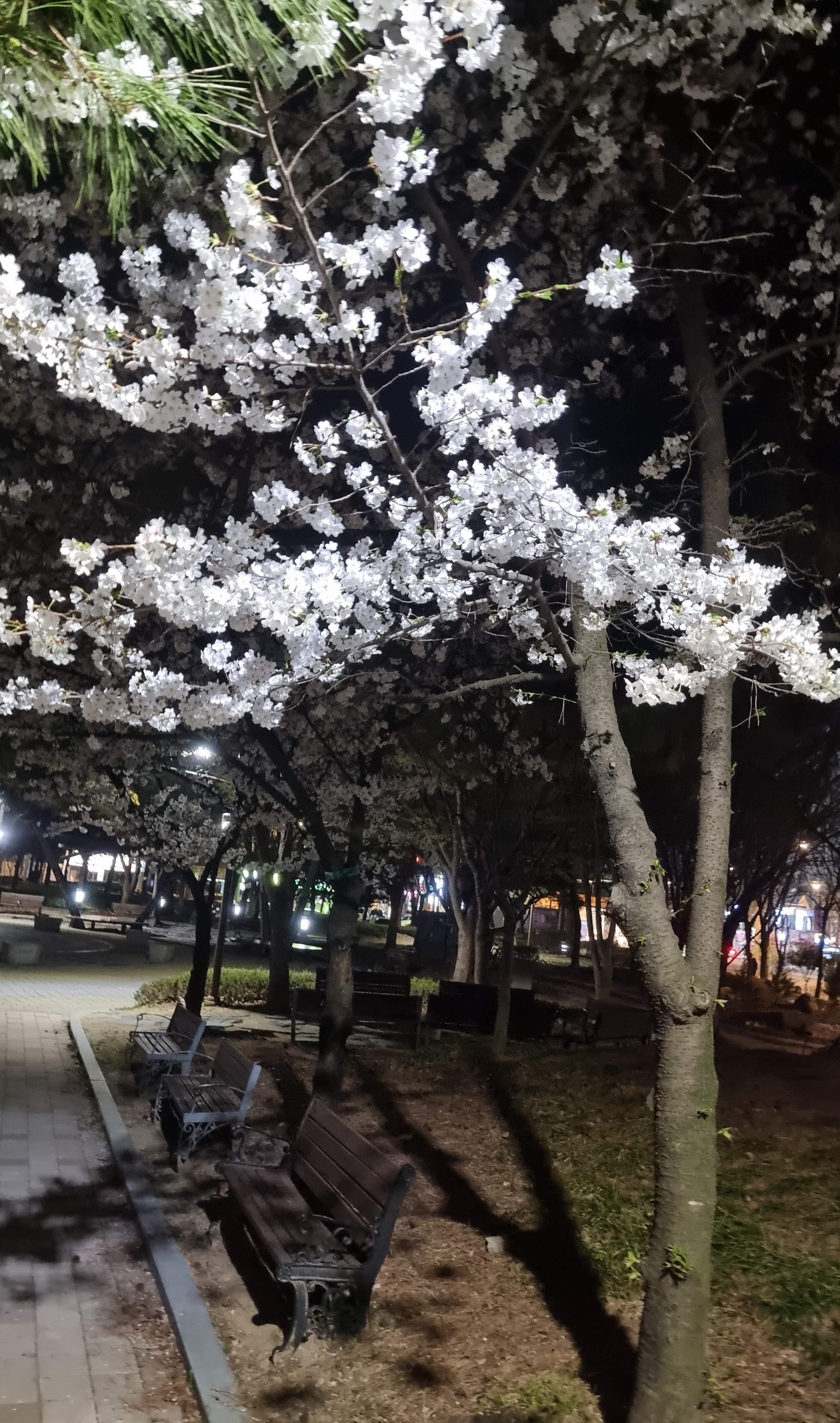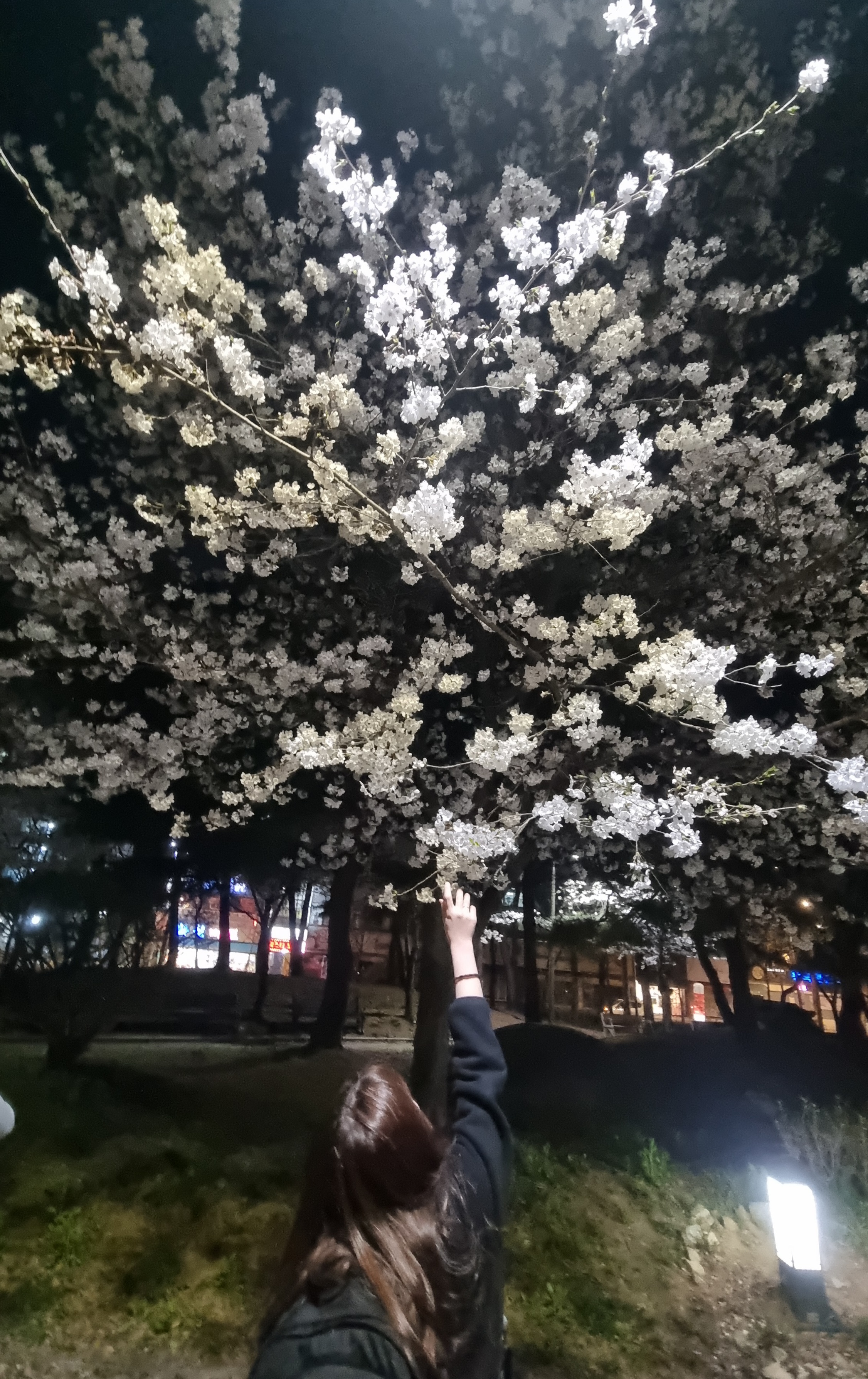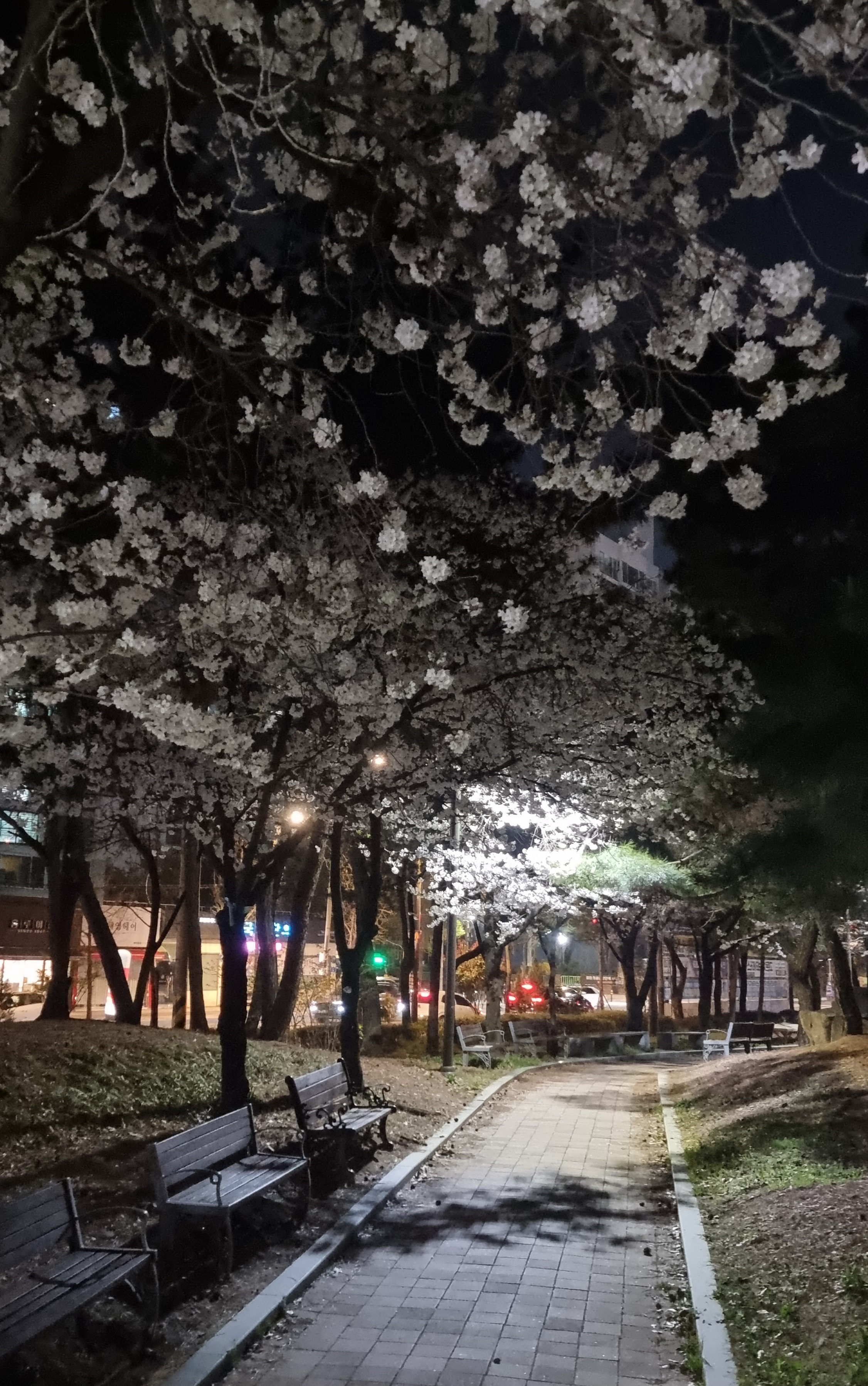 봄꽃을 보며 여유롭게 걷는 밤길이