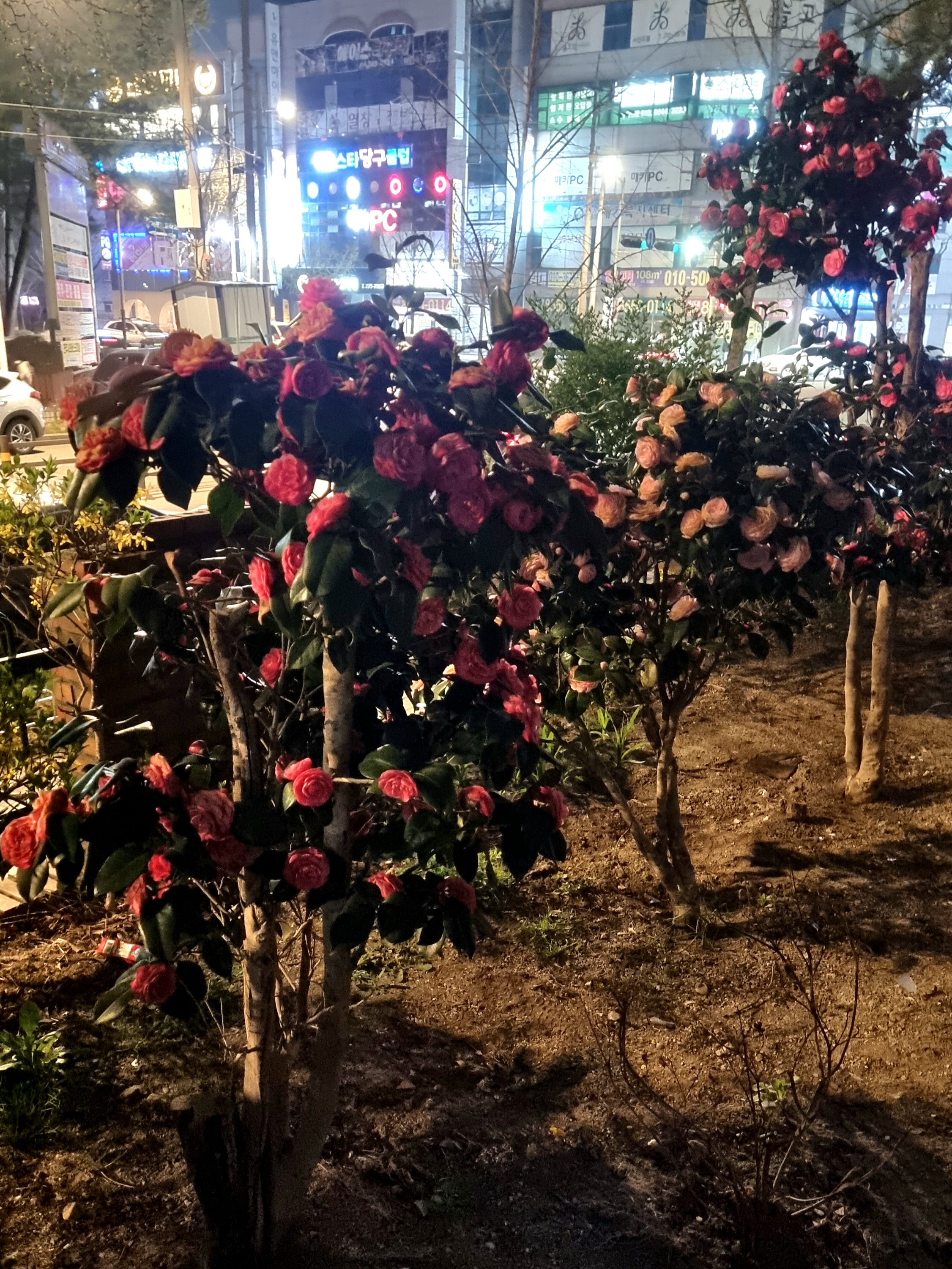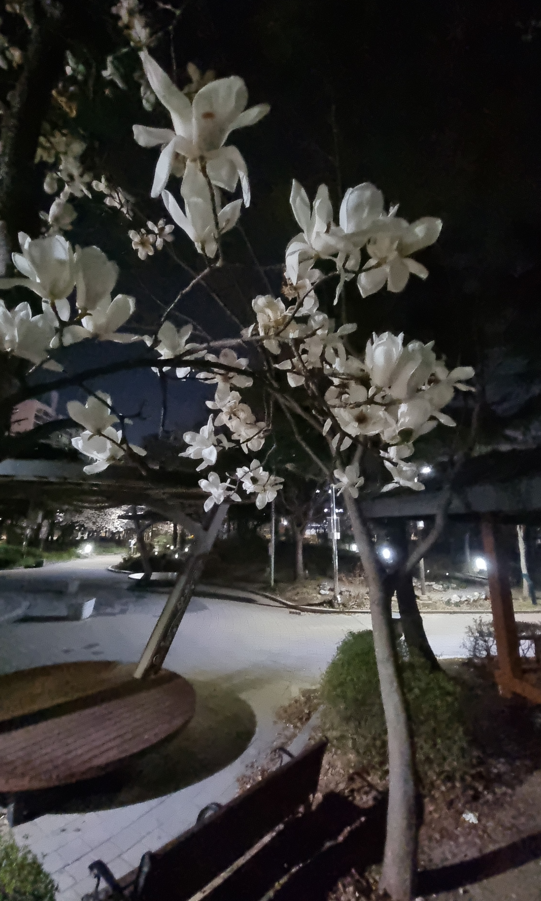 밤에 피어있는 꽃의 또 다른 아름다움에 빠져봤습니다