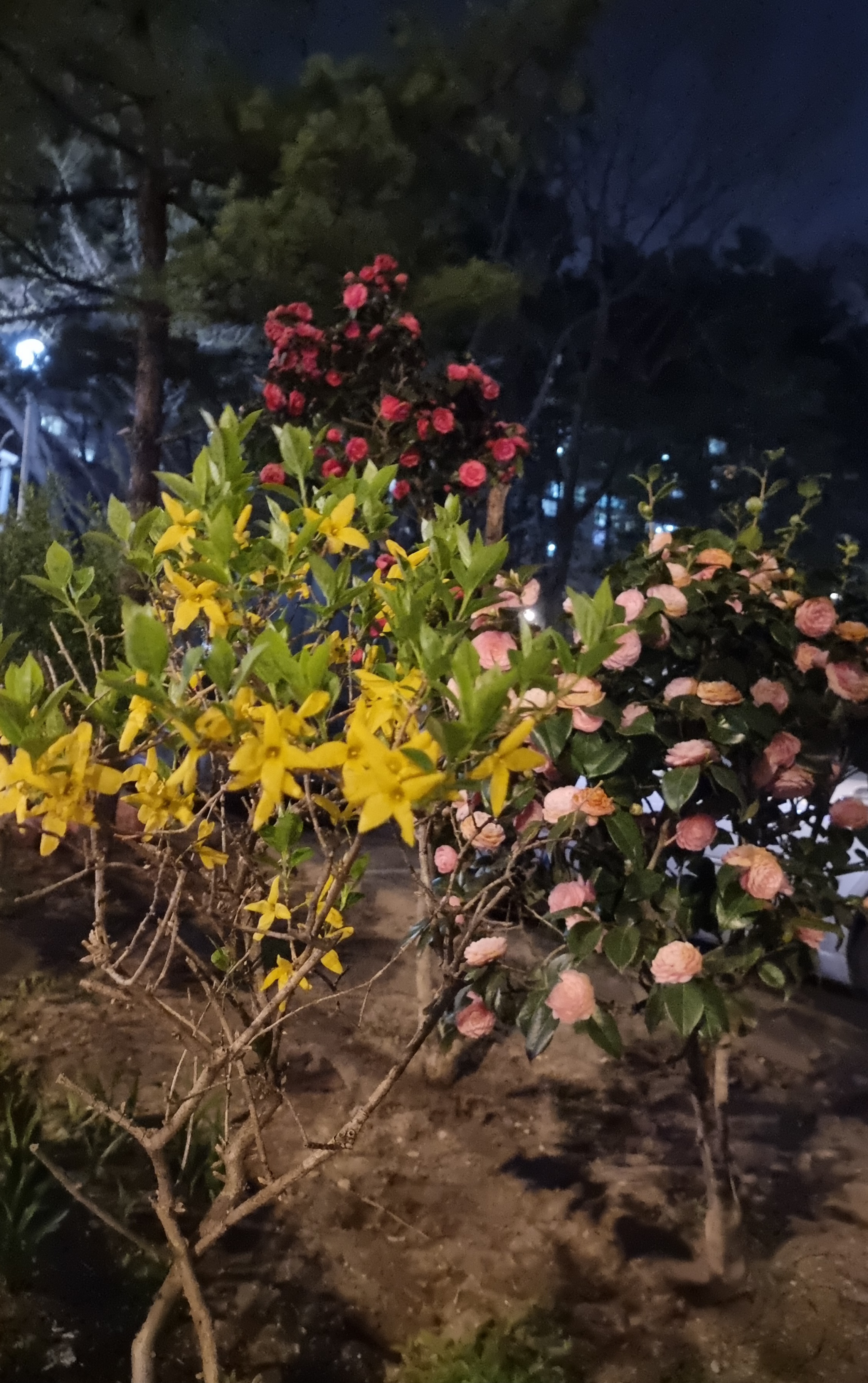 개나리, 동백이 예쁘게 꽃을 피웠습니다